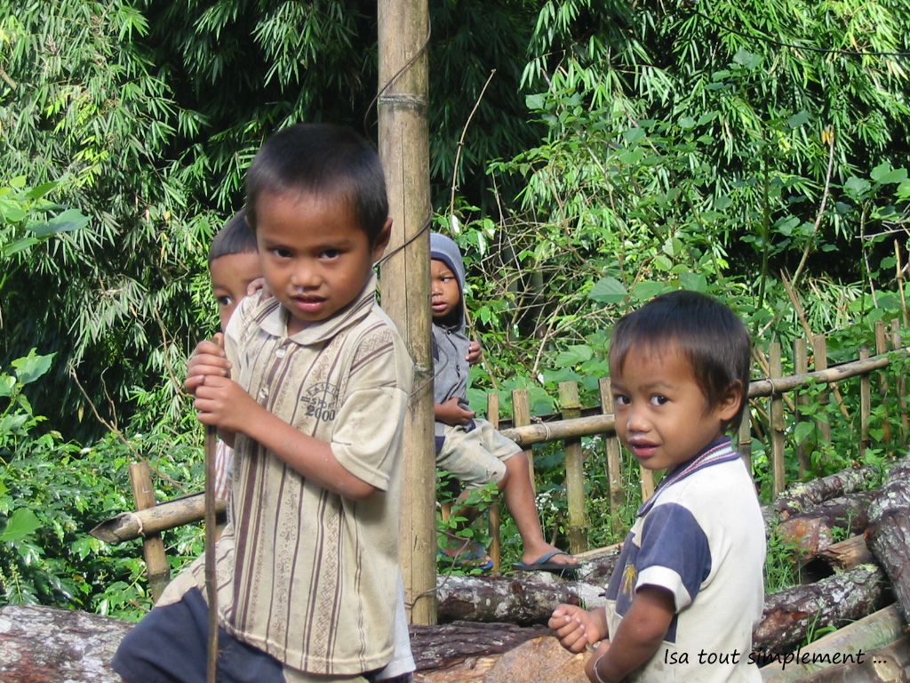 Ou au Nord des iles Sulawesi, de jeunes garçons devant une église incendiée par les islamistes …
