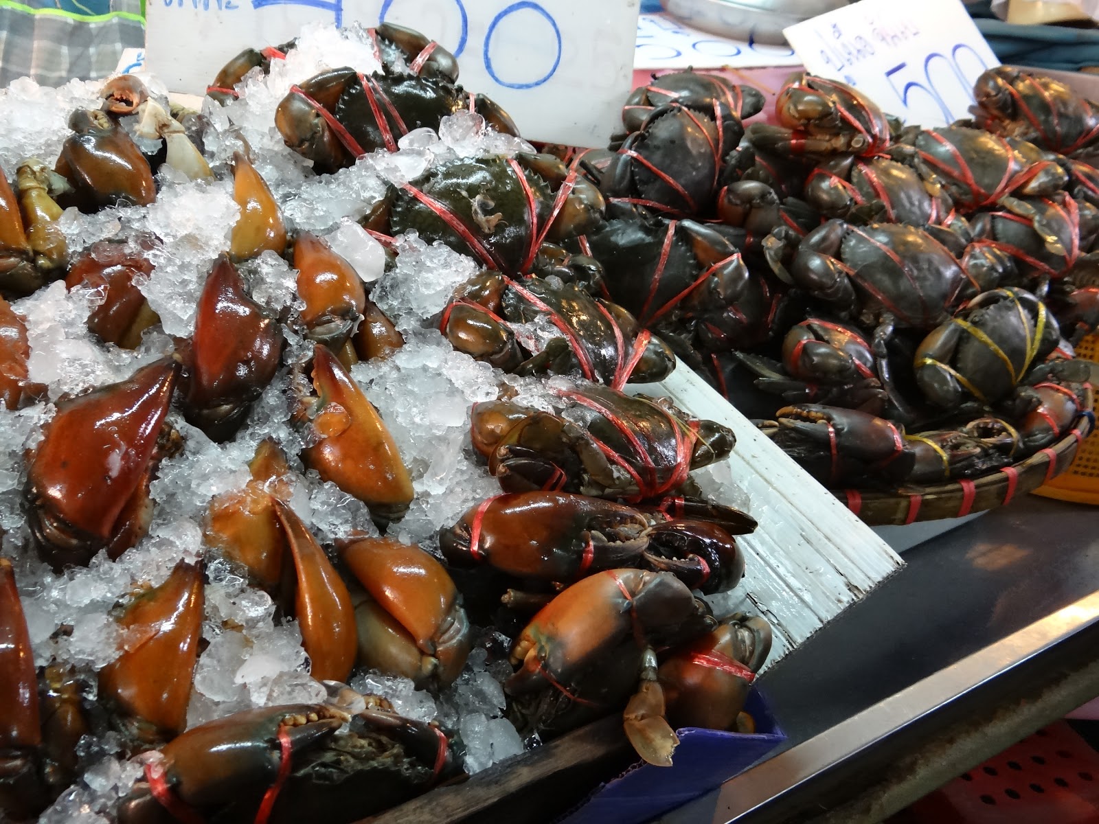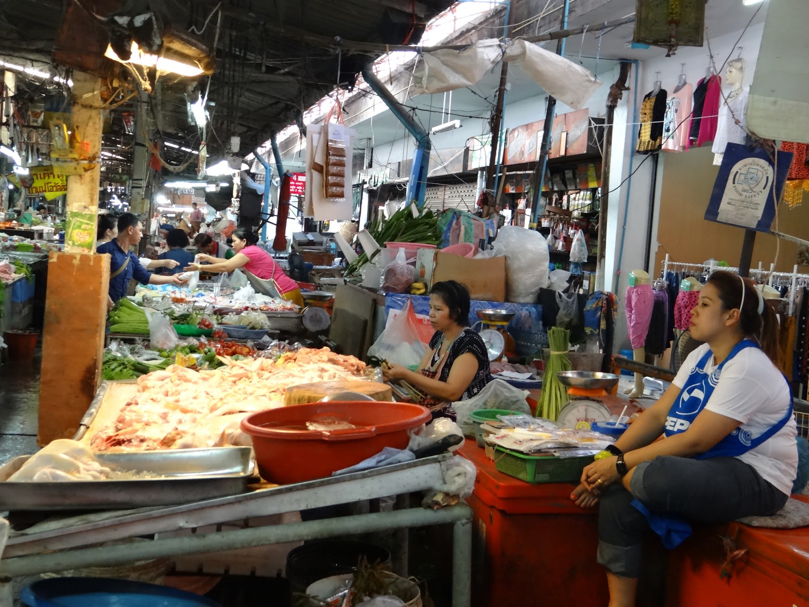 Puis le Lam Yai Market , marché de jour de produits frais , poissons , anguilles , tortues vivantes sont présentés dans des sauts d’eau , des fruits et légumes qui nous sont totalement inconnus , étals de poissons , de viande côte à côte , tout cela avec des odeurs mélangées assez fortes et qui font tourner la tête.
