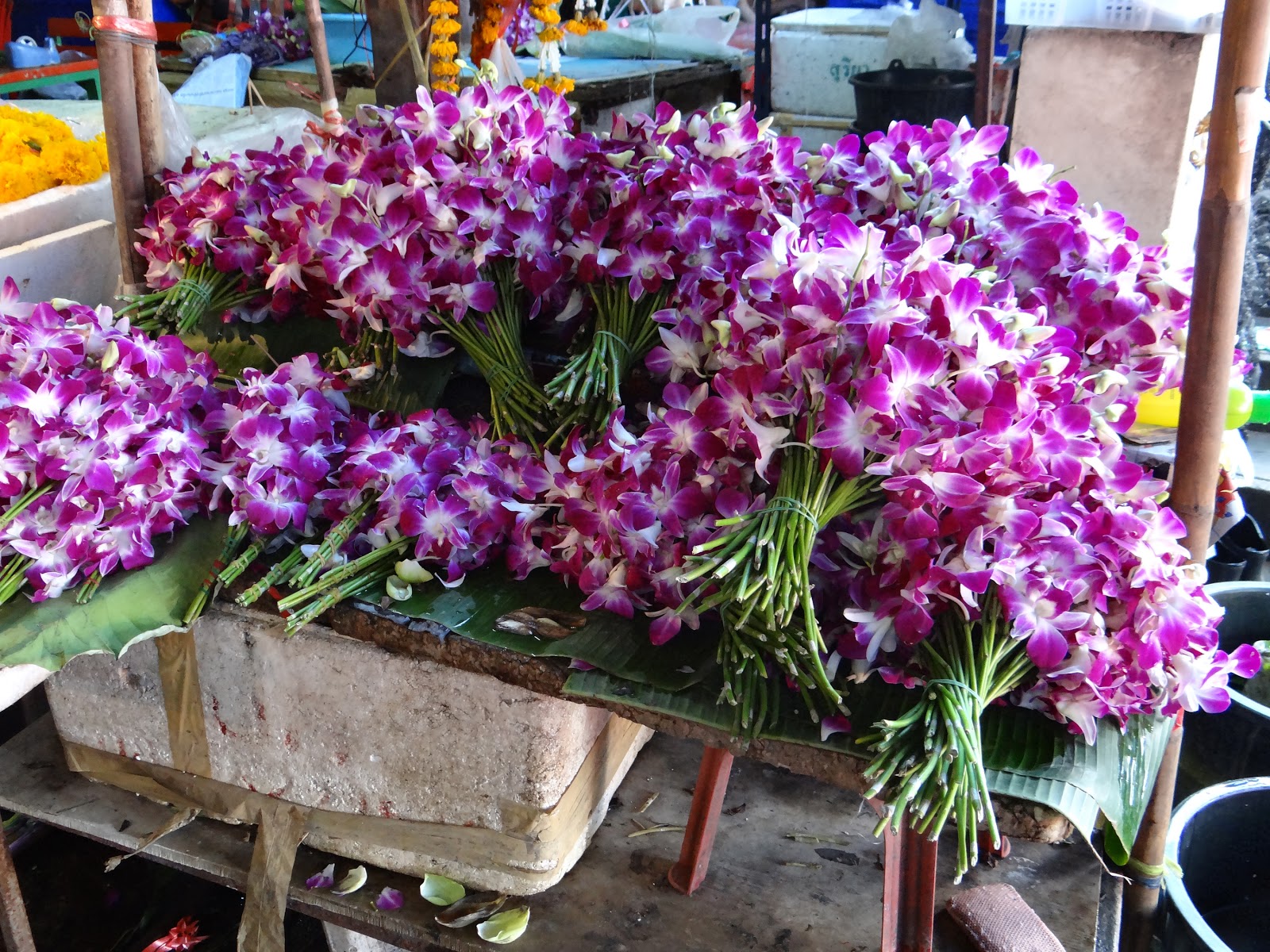 Nous rejoindrons ensuite  le marché aux fleurs, orchidées, chrysanthèmes, roses, offrandes   œillets sont celles que j’ai réussi à reconnaître mais il y en a bien d’autres …