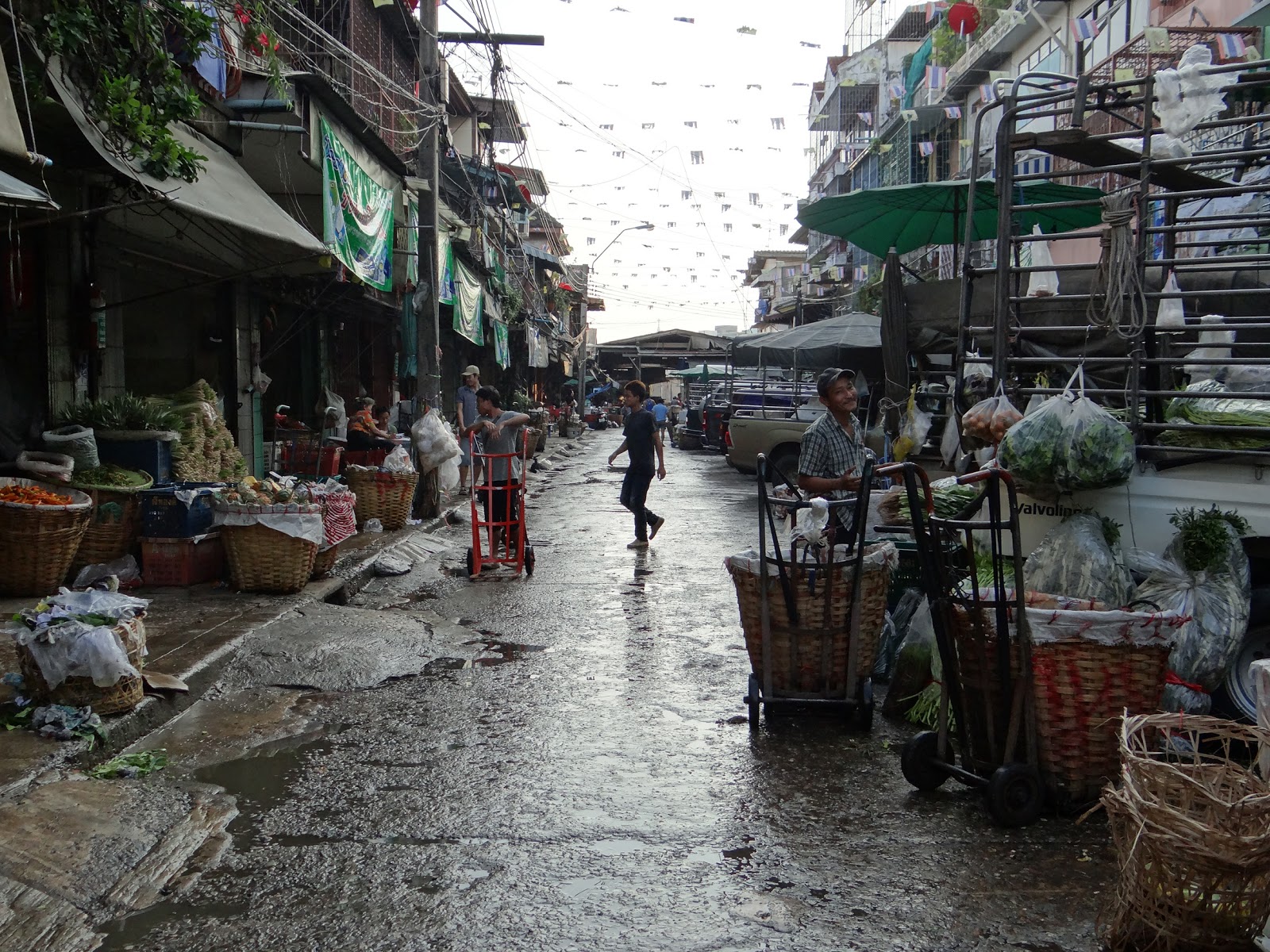 Un trafic dans lequel les chalands doivent se frayer un chemin tout en évitant les rigoles ruisselantes d’eau et de détritus divers.