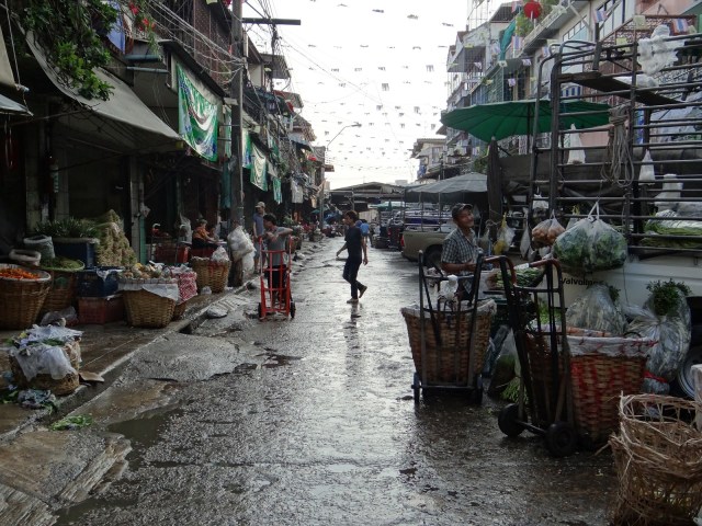 Les ruelles qui les desservent sont encombrées de livreurs en moto, à vélo, à pied, transportant, tirant ou poussant dans tous les sens des attelages d’une diversité et d’une créativité proprement déconcertante.