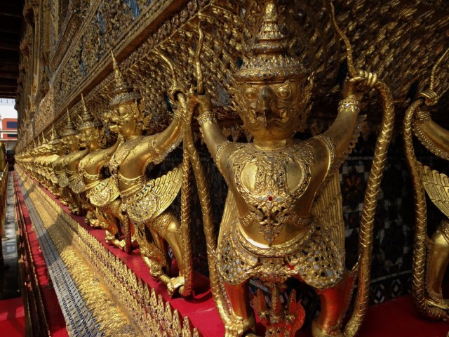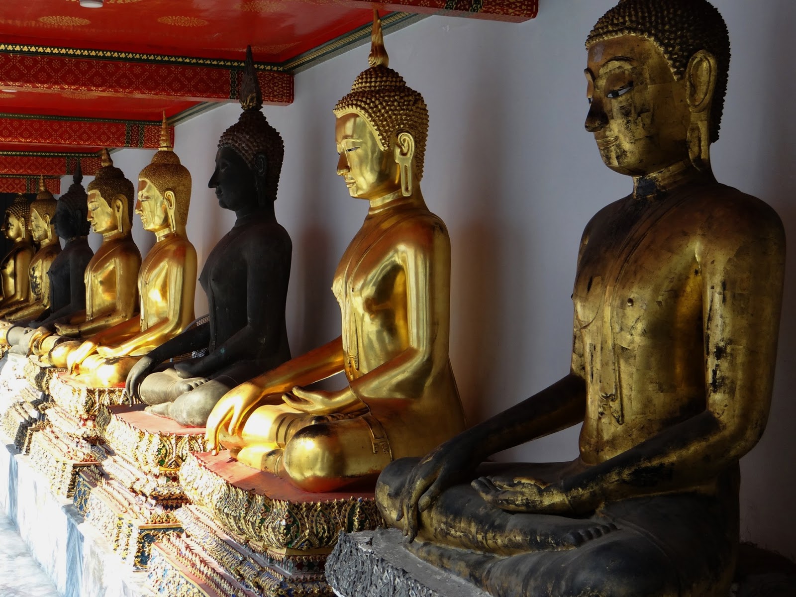 Celui qui nous aura le plus émerveillé : le Wat Pho visible depuis la rivière Chao Praya comme une multitude de temples scintillants sous les rayons du soleil.