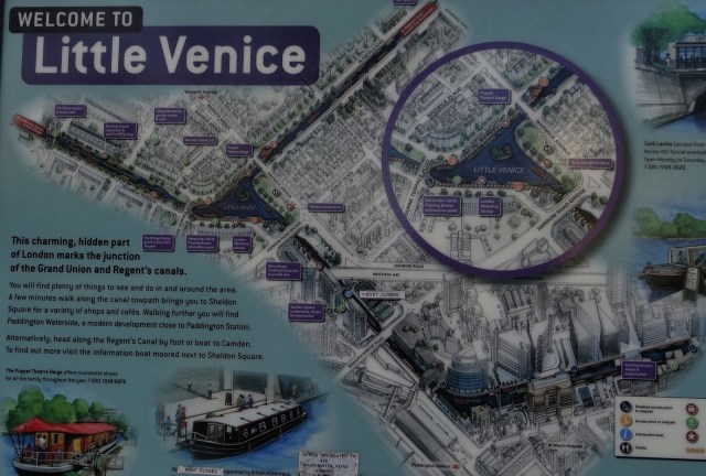 Little Venice est à la jonction entre 2 canaux , le Régent Canal et le Grand Union avec en son centre une petite île nommée Browning’s Island en l’honneur d’un poète qui vivait juste à côté .