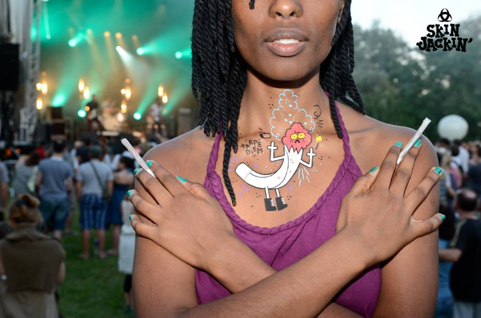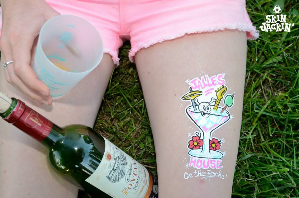 A partir de ce moment-là , le style Skin Jackin est né et les tatouages éphémères aux couleurs flashy et décalés et surprenants se sont développés, puis exportés vers Paris , Montréal et bientôt all around the world …