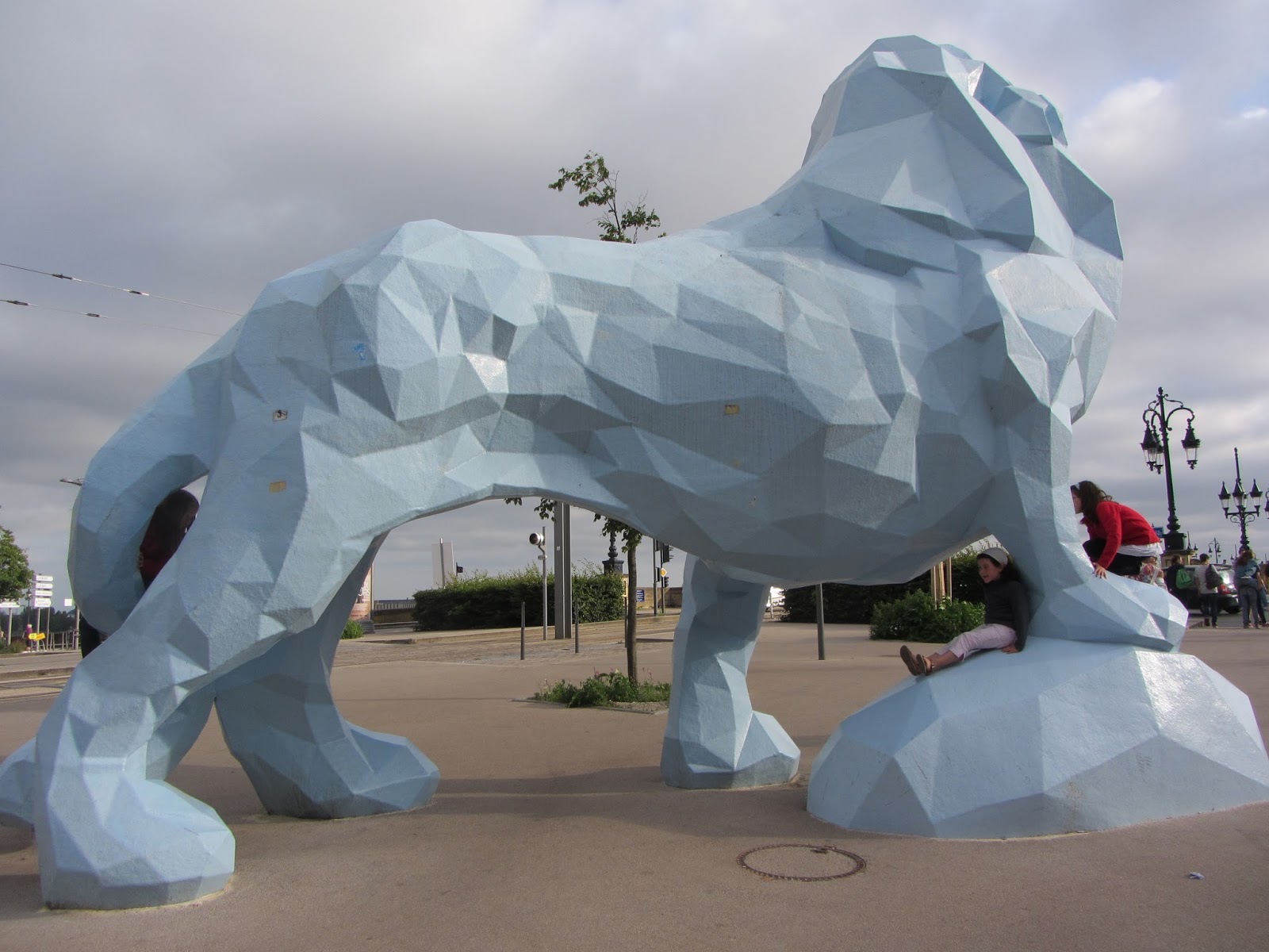 Tout en pierre blonde et brique rouge, ce pont prend des allures de berge à fleur d’eau à marée haute et tout au bout, sur la place Stalingrad , l’impassible lion bleu semble mener la garde.