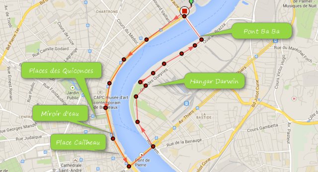 La promenade la plus classique reste la boucle entre le pont Chaban Delmas, habituellement appelé le pont BaBa comme Bacalan Bastide, et le pont Saint-Pierre fierté des bordelais, dont je fais partie.