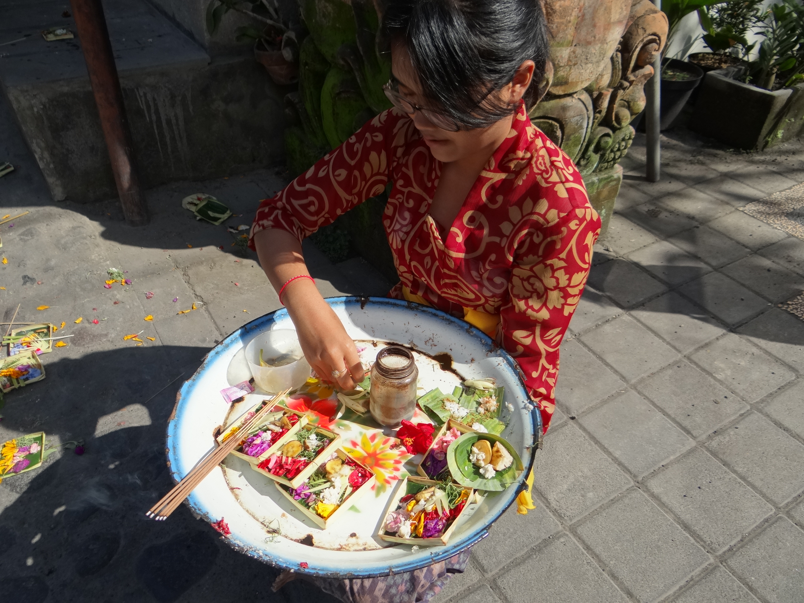 Il faut apprendre à se perdre dans ces rues, et à se promener lentement au rythme du Gamelan, à sentir l’encens et contourner les offrandes délicatement déposées un peu partout.