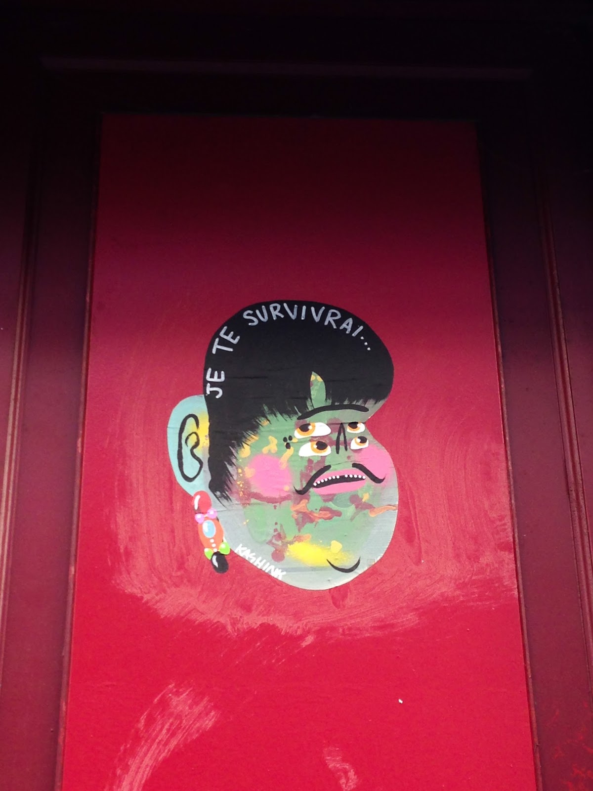 D’autant que Kashink a continué à semer sur le sol bordelais durant tout le week-end en déposant tout le long des rues Bouquiere et de la Rousselle ses portraits, en version mini, avec pour chacun un message approprié au lieu … mais aussi en plein coeur du quartier Saint Michel, où elle a œuvré en compagnie d’Alber au bout de la rue des Menuts.
