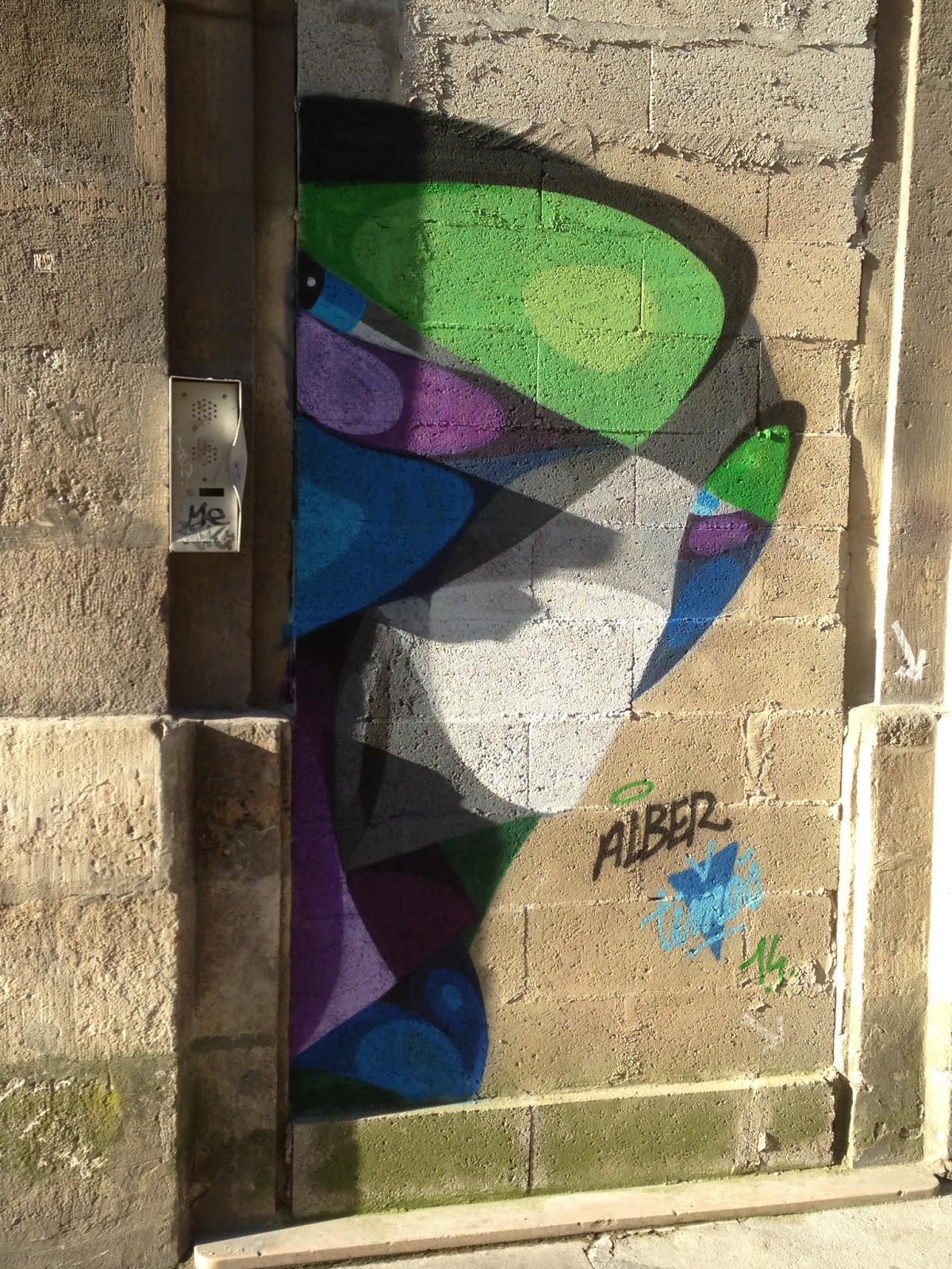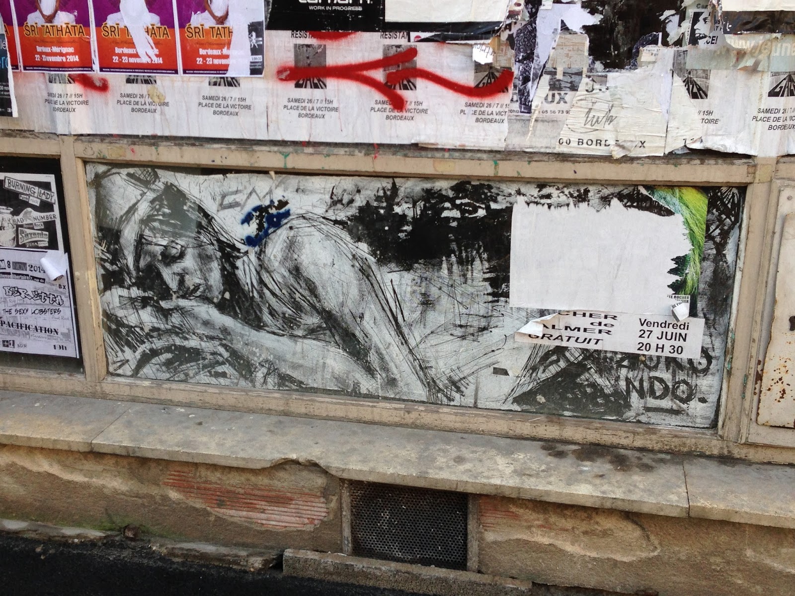 Enfin enfin …  pour ceux qui, comme moi, sont sous le charme de la poésie de Borondo, ils ont toujours la faculté d’aller faire un pèlerinage rue Planterose pour admirer le glass scratching qu’il a réalisé lors de son dernier passage sur Bordeaux.