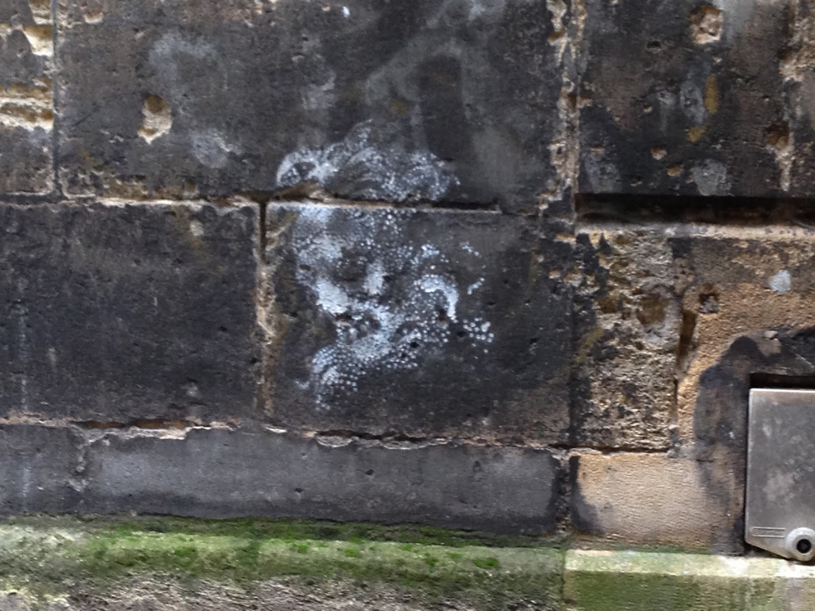 Certaines oeuvres sont plus faciles à trouver, que d’autres, qui se cachent dans un recoin sombre d’un mur, ou sur une porte tout au bout d’une impasse, je pense notamment aux pochoirs en pointillé d’Eric Bevernage.