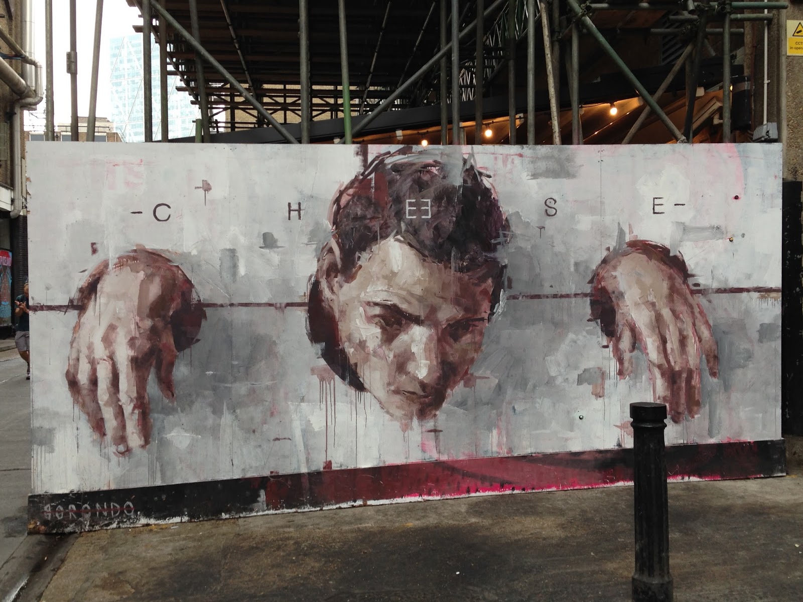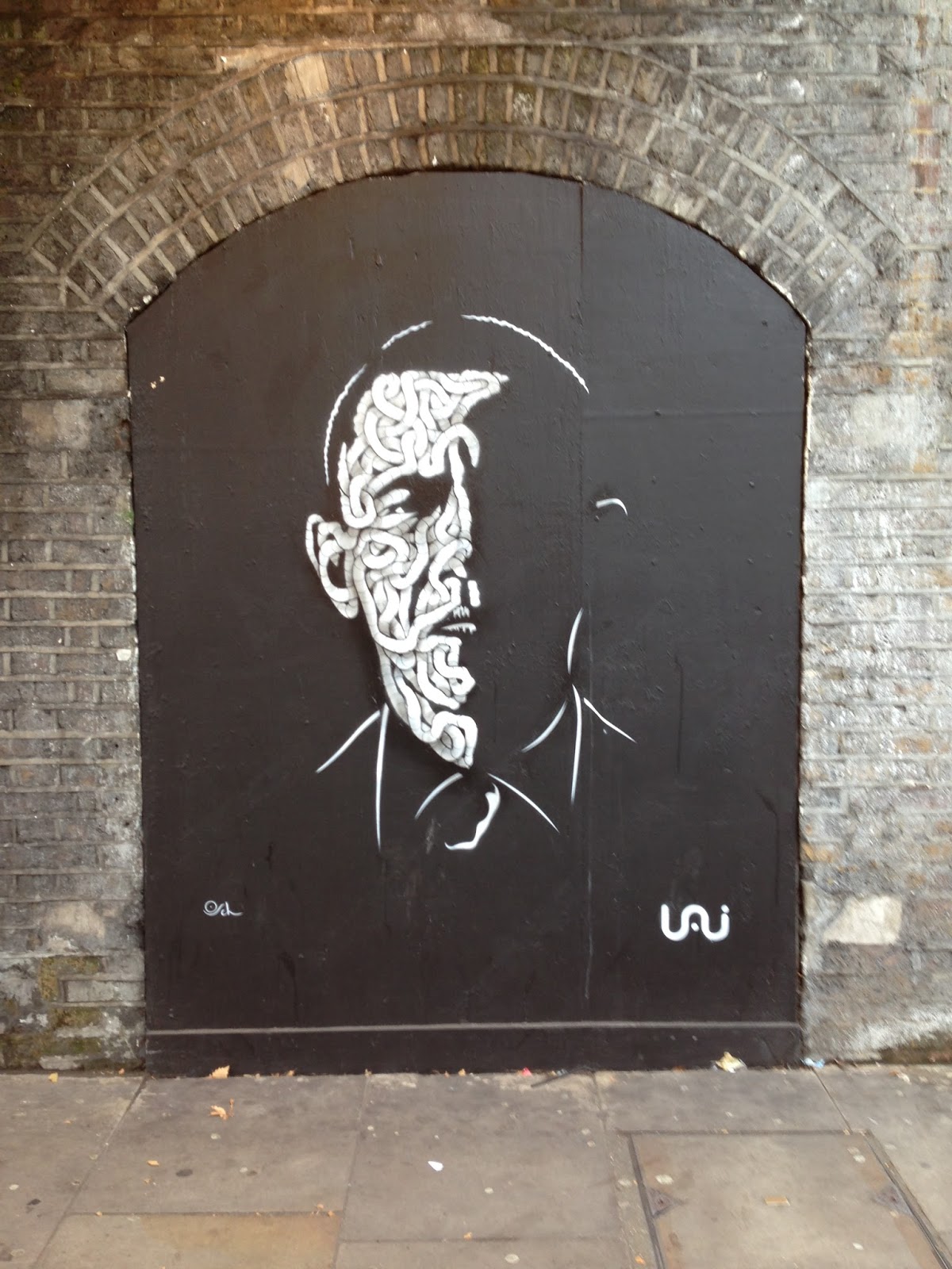 Au rayon des incontournables qui étaient toujours là lors de mon dernier séjour, le Looking For de Borondo au début de New Inn Yard, probablement mon préféré actuellement, et je tremble à l’idée qu’un jour il ne puisse plus être…chaque nouveau séjour dans la capitale anglaise, je file le voir, un peu comme un pèlerinage.