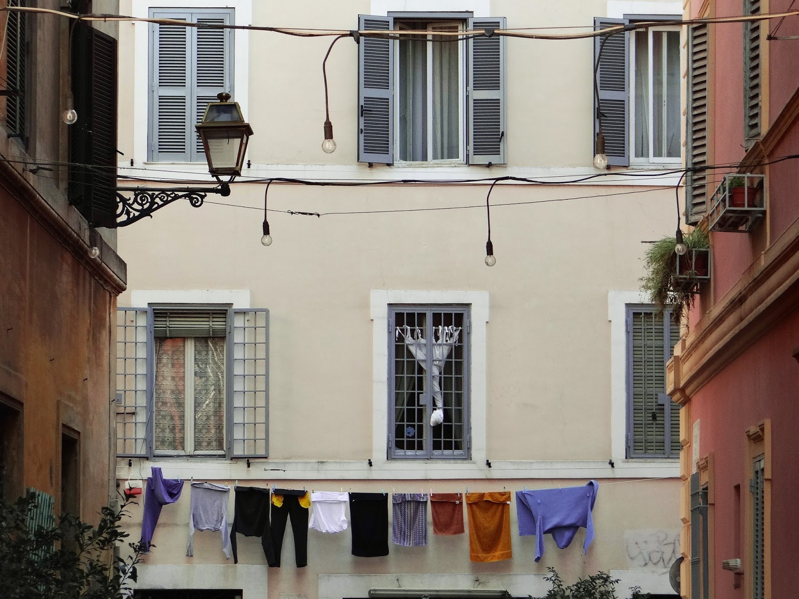 23. De très belles photos, les couleurs du ciel romain, les crépis décrépis, le linge aux fenêtres, une décrépitude qui en devient charmante… Nous allons presque jusqu'à sacrifier notre sacro-saint champagne pour un spritz !