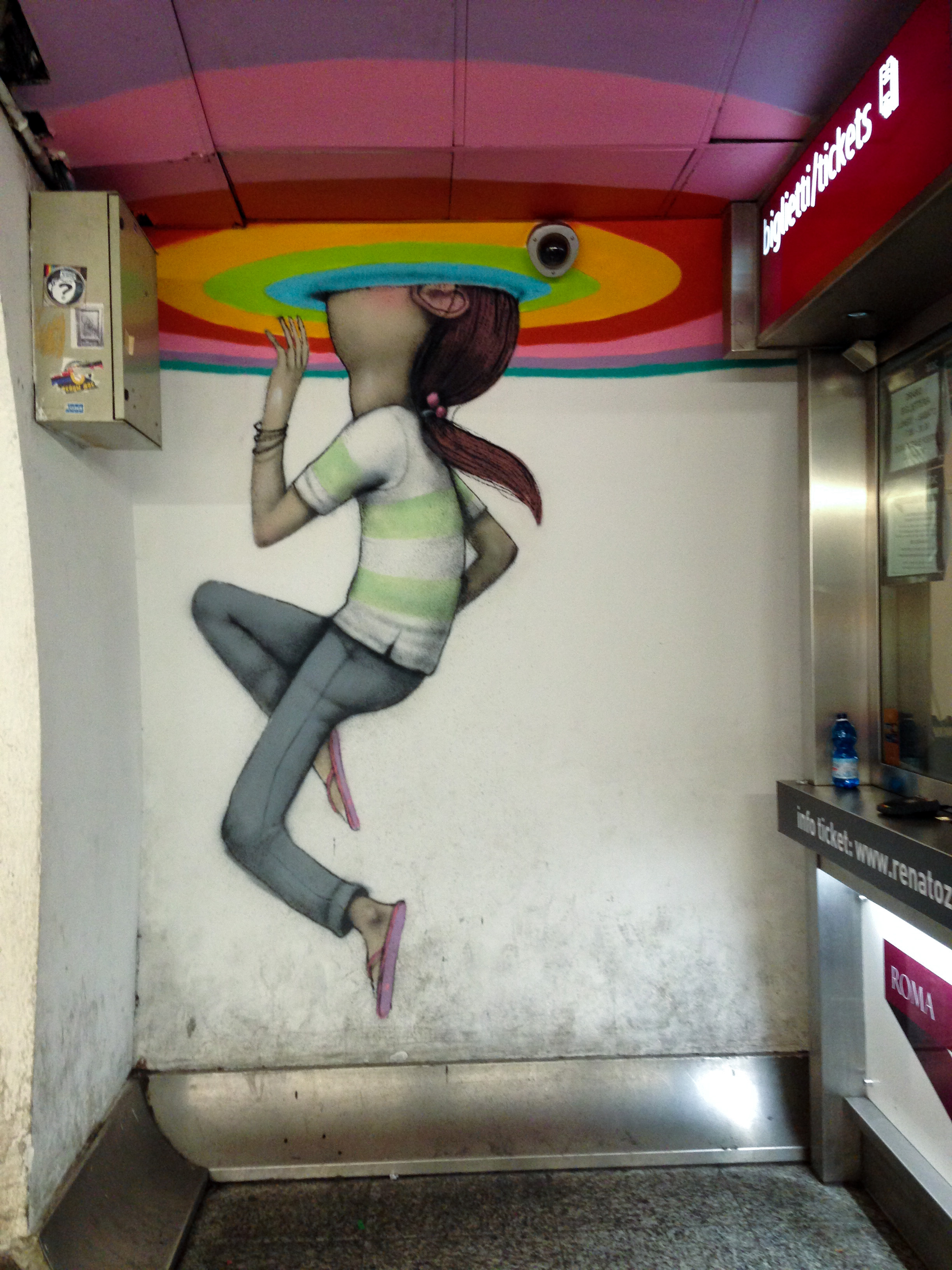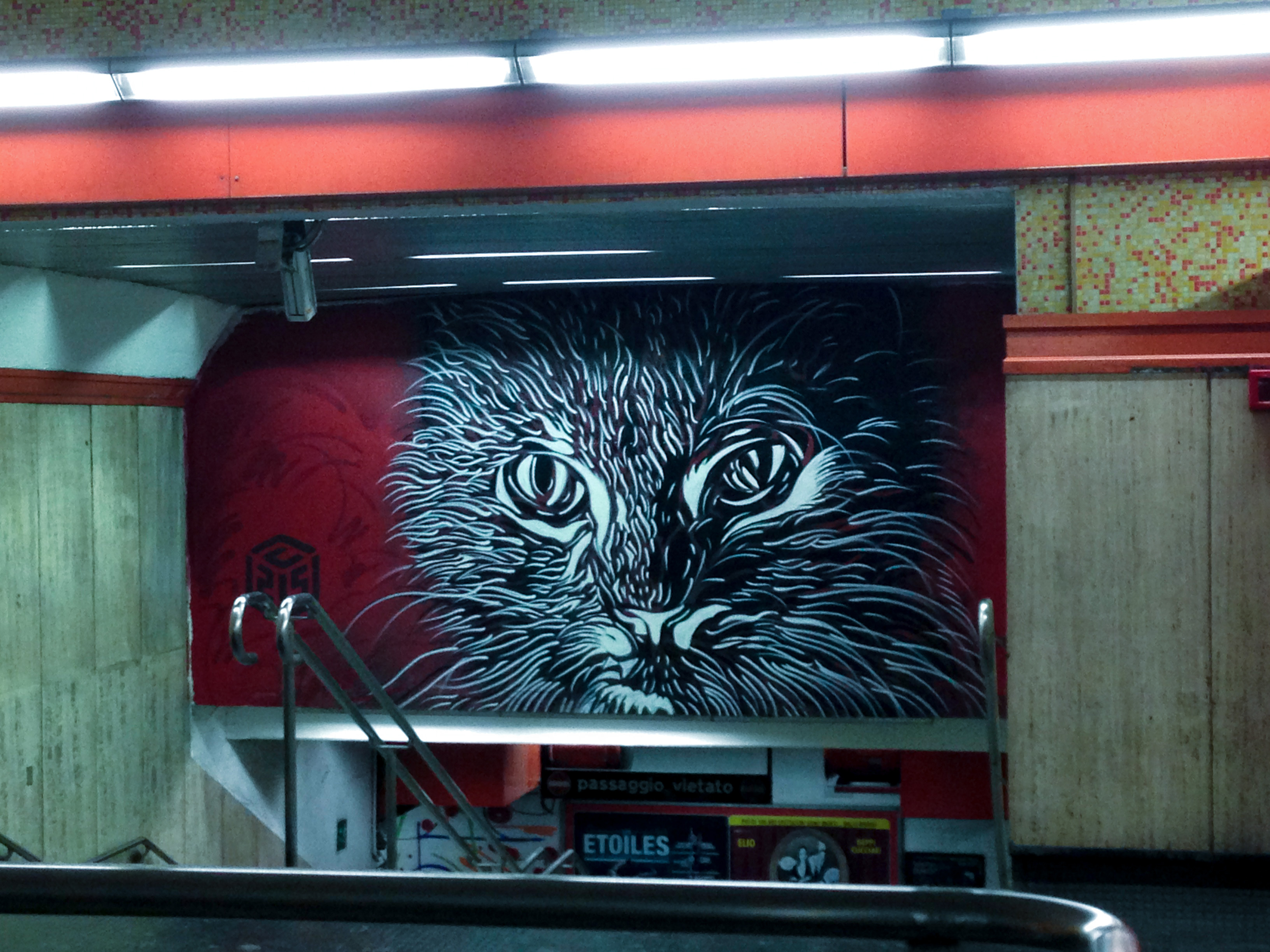 Et pourtant, en Mai 2014, peut-être dans un souci de réinstaurer le dialogue, la dite compagnie a convié 6 artistes français de renom, C215 aka Christian Guemy, Seth aka Julien Malland, Philippe Baudelocque, Alexone, Popay et EpsilonPoint dans le cadre du festival Avanguardi Urbane organisé par la galerie 999Contemporary pour 2 types de performance : redécorer la rame de métro Rome-Lido et habiller la station de métro romaine la plus fréquentée des locaux et touristes : métro Spagna.