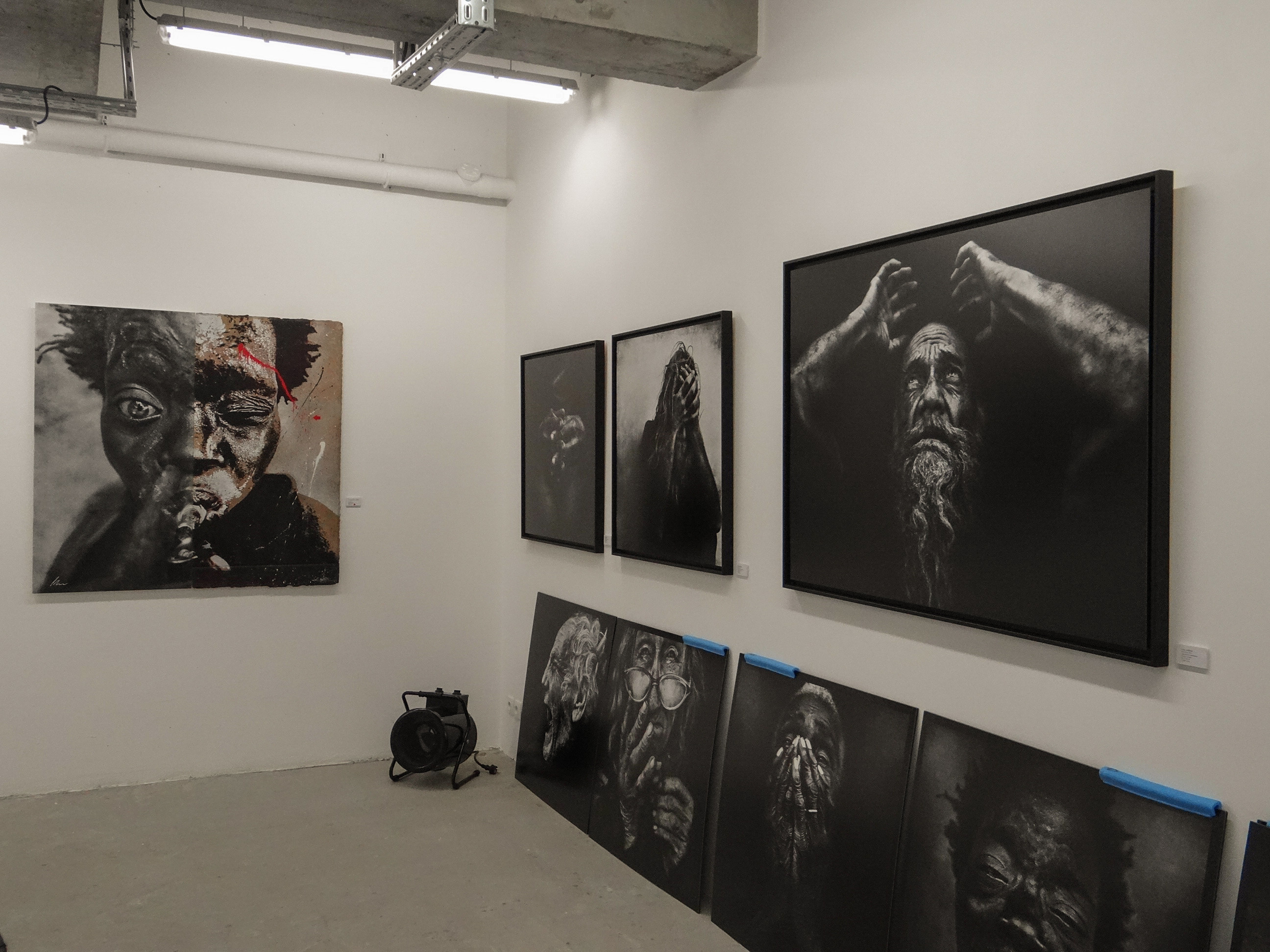 D’un côté, des photographies de sans abri, les traits creusés et les visages abimés par une vie de souffrance, toujours en noir et blanc, pour mieux faire ressortir les émotions communiquées par les yeux de ces oubliés de la société.