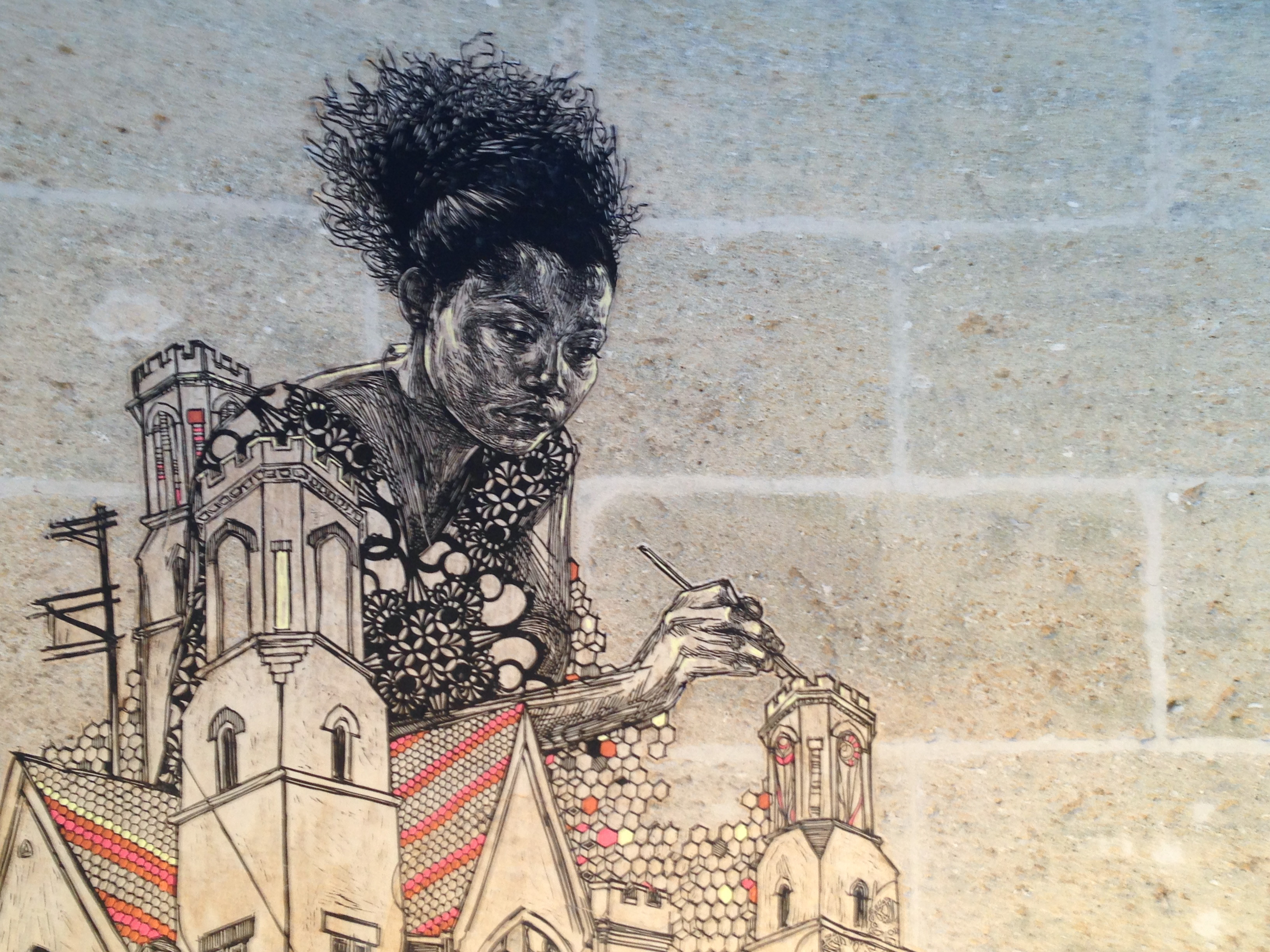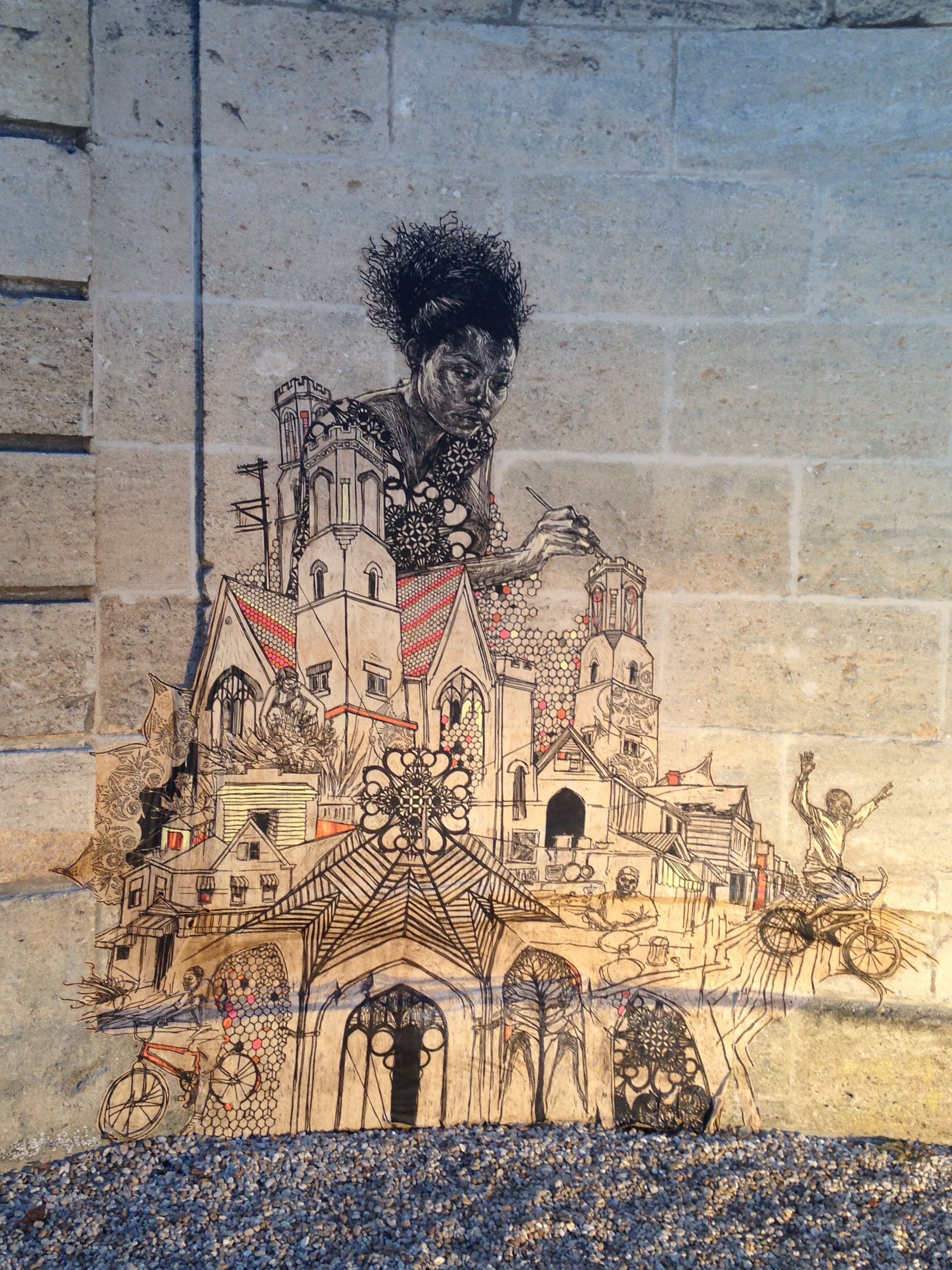 La précision et le détail des dessins m’avaient complètement bluffé mais également la manière dont ce collage changeait totalement la physionomie de la rue.