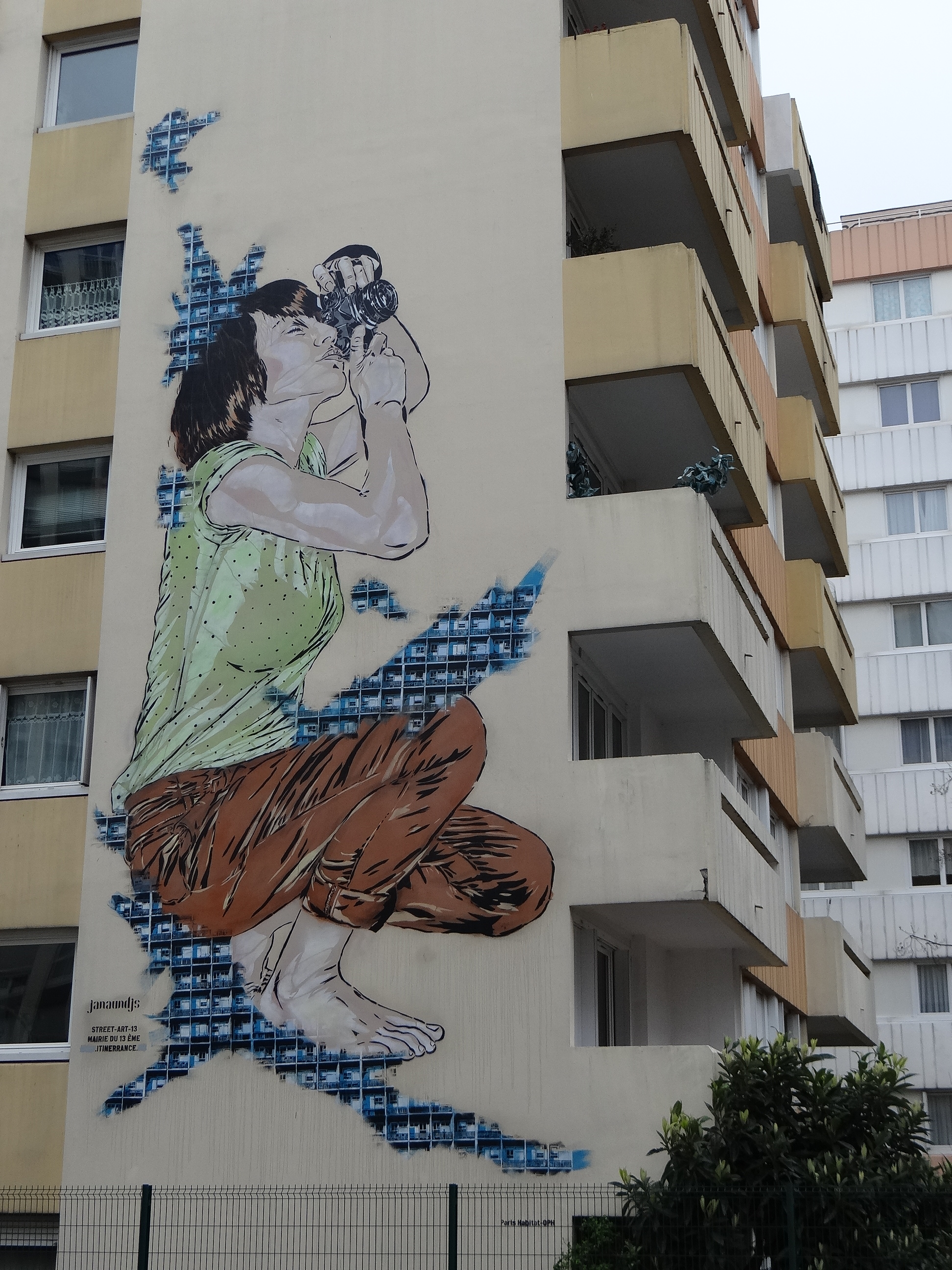 Même si j’ai eu la chance de faire parti des visiteurs de la Tour Paris 13, si je me balade réguliérement dans le 13éme arrondissement et que je suis avec intérêt l’actualité et les exposition de la galerie Itinérrance, cette conférence fut l’occasion de découvrir autrement les lieux et d’imaginer l’histoire qui se cache derrière fresques, collages et pochoirs.