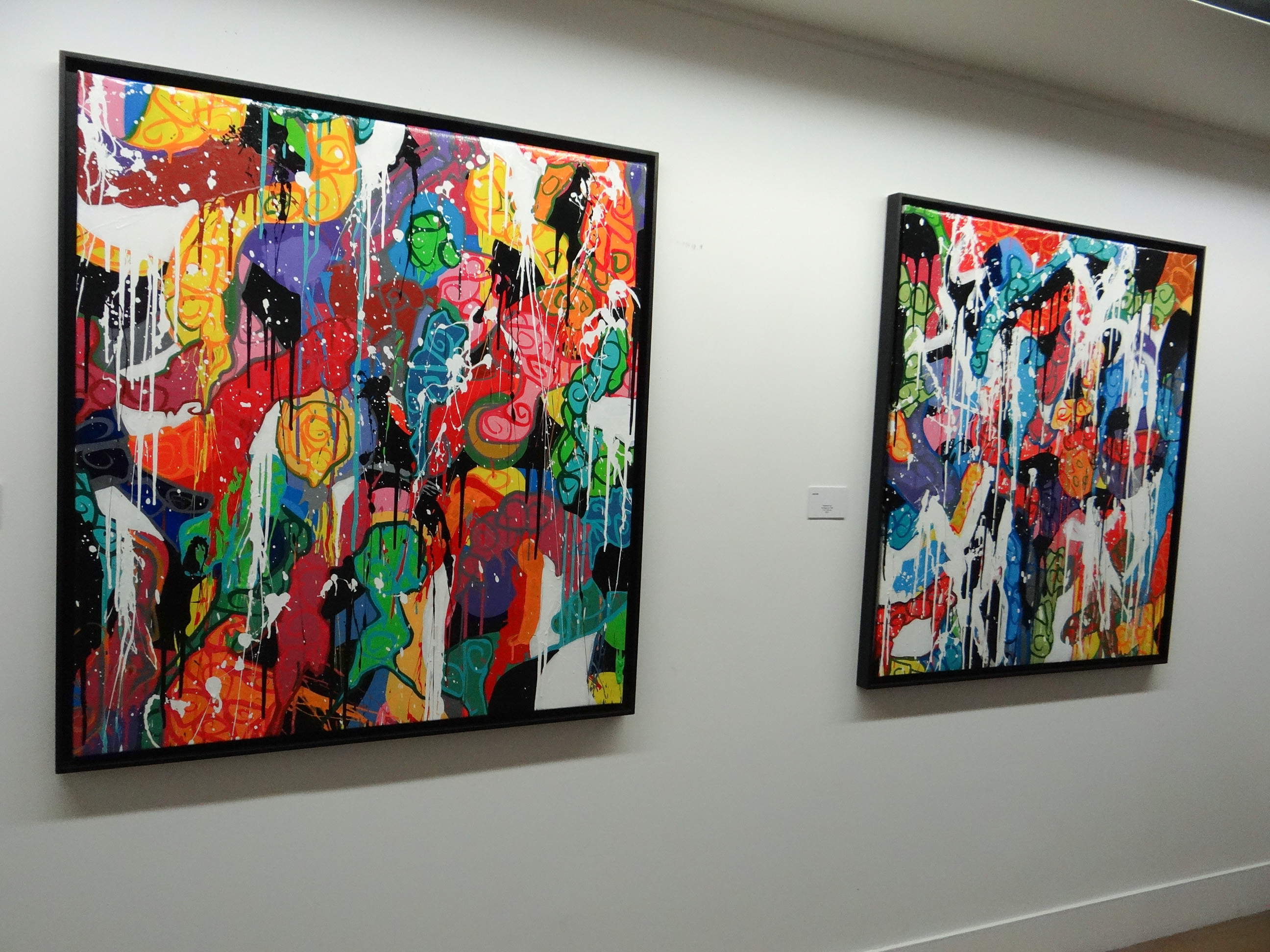 A côté, une peinture aux multiples nuances de roses trône, le contraste est flagrant.