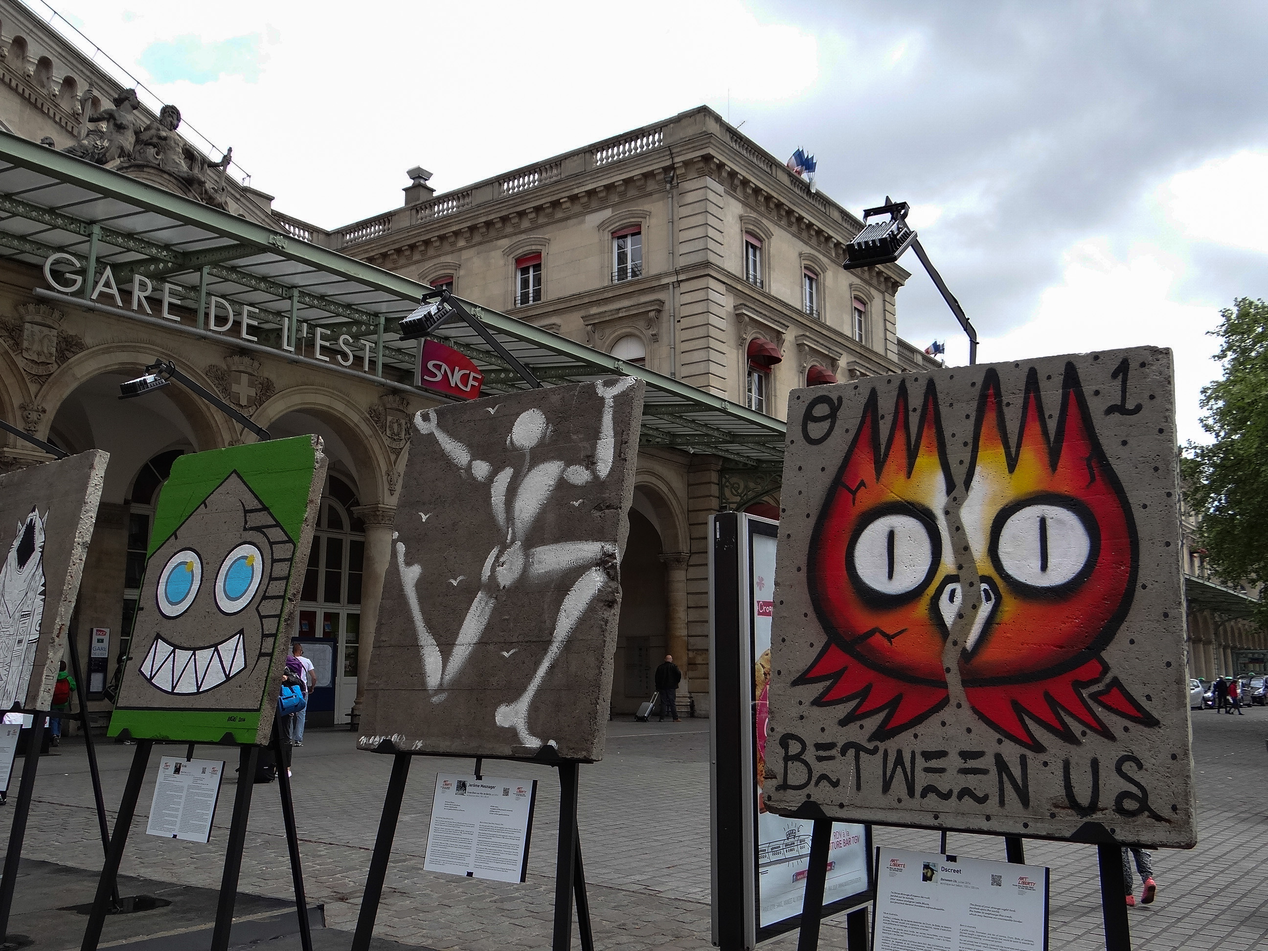 Depuis le 15 Avril, comme un trait d’union entre les différentes générations d’artiste d’art urbain mais aussi deux pays, la Gare de l’Est met à l’honneur ces précurseurs de l’art urbain mais aussi la dernière génération de grands artistes internationaux de street art qui ont souhaité contribuer à cet hommage rendu au mur de Berlin en créant 30 œuvres uniques sur des fragments de murs encore vierges.