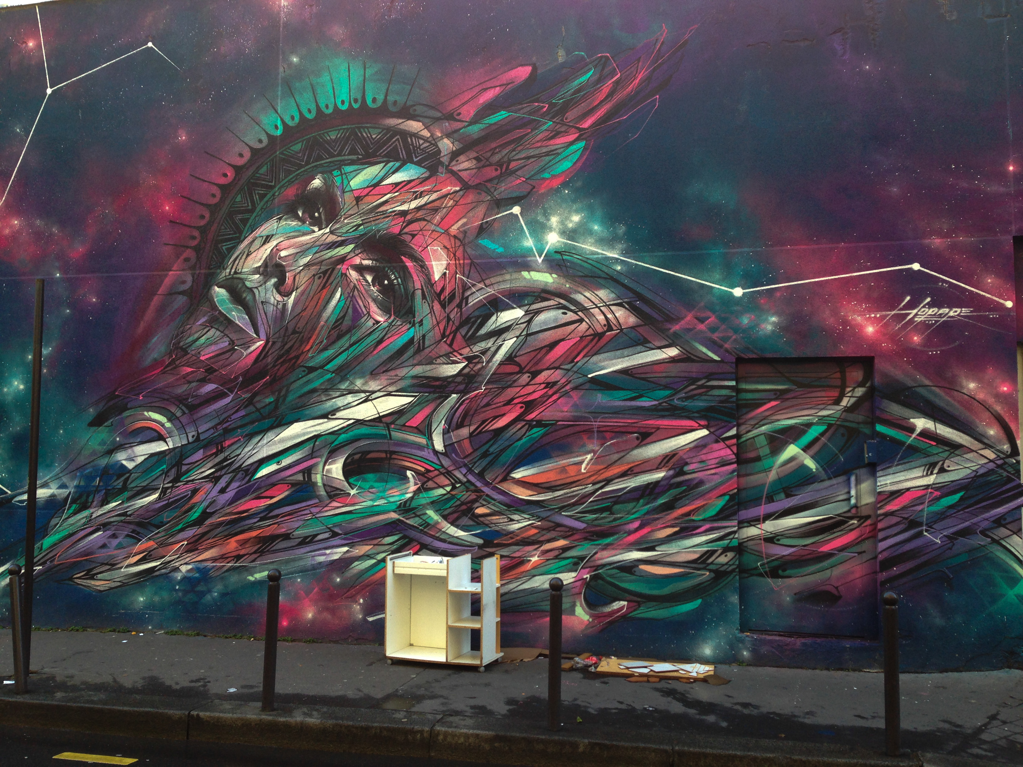 Quelques semaines plus tard, c’est dans le cadre de l’évènement La Peau s’affiche réunissant un groupe de street artistes parisiens sur la place du Palais Royal que je découvrirais le nom de cet artiste : Alexandre Monteiro aka Hopare.