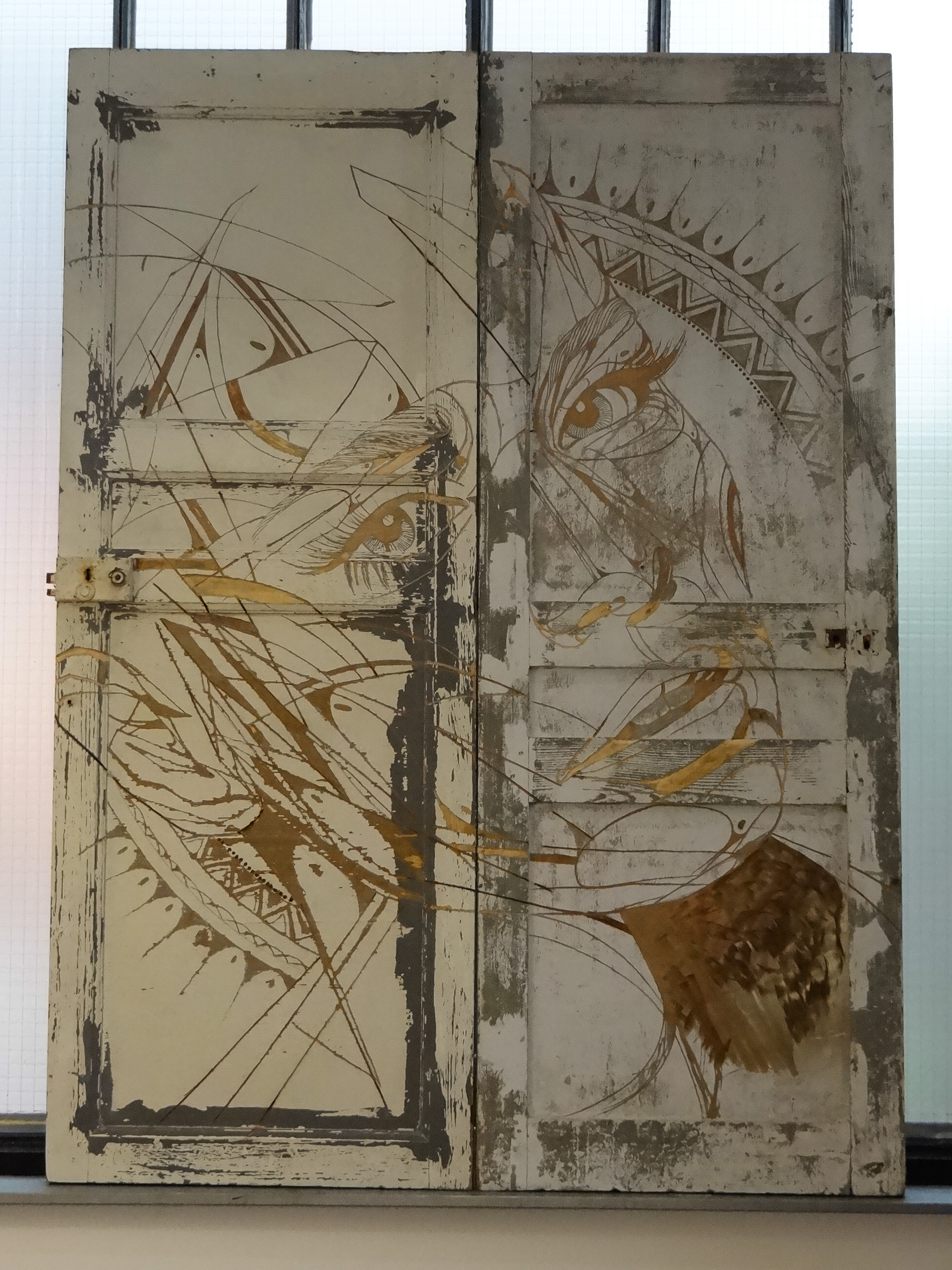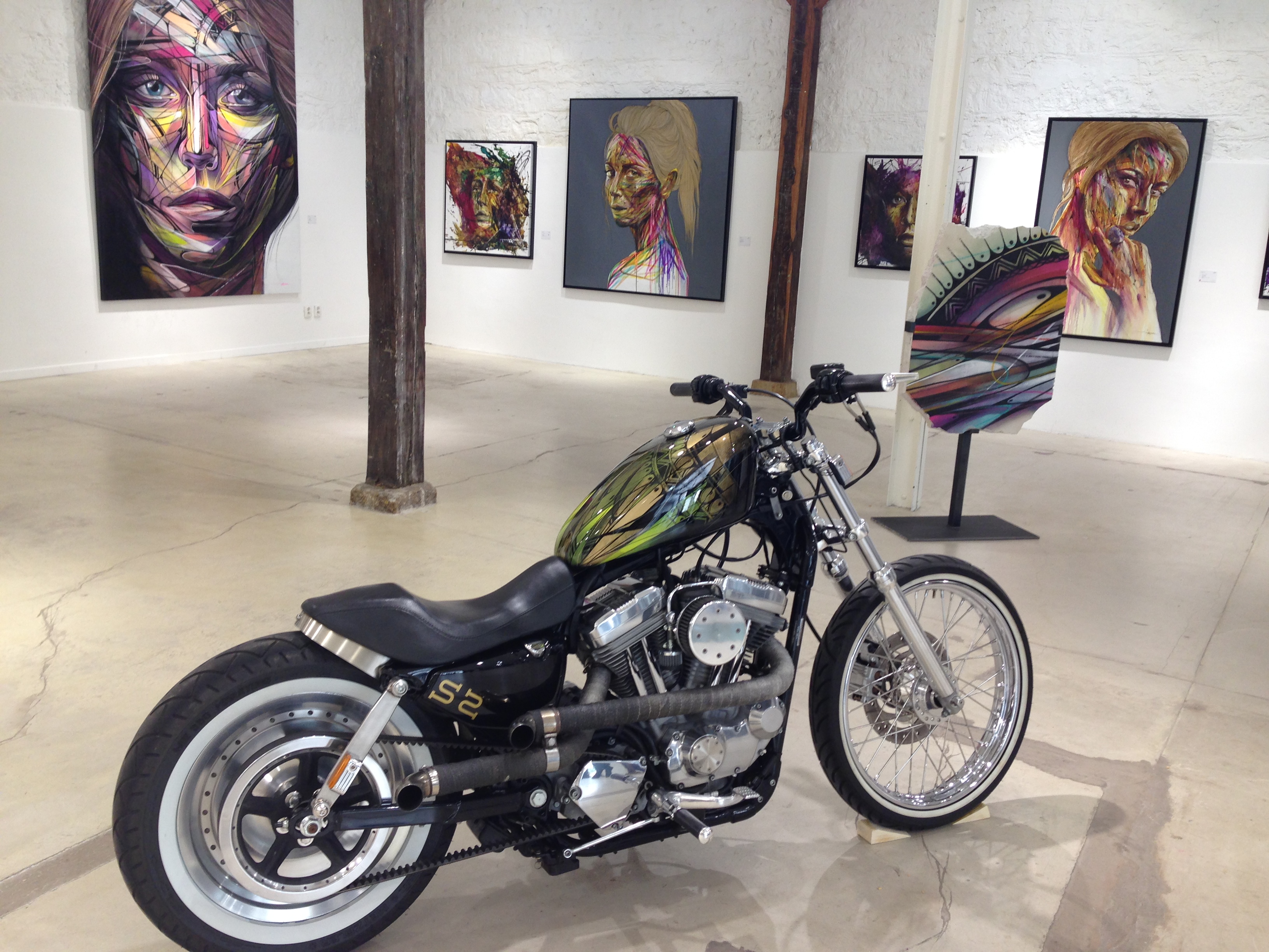 Découpage, collage, peinture sur mur ou sur toile, il touche à tout et l’a encore une fois prouvé lors de son dernier solo show présenté par la galerie 42b à l’espace Léon en présentant un portrait gravé sur une porte en bois, un autre réalisé au fusain où une peinture effectuée sur le reservoir d’une moto.