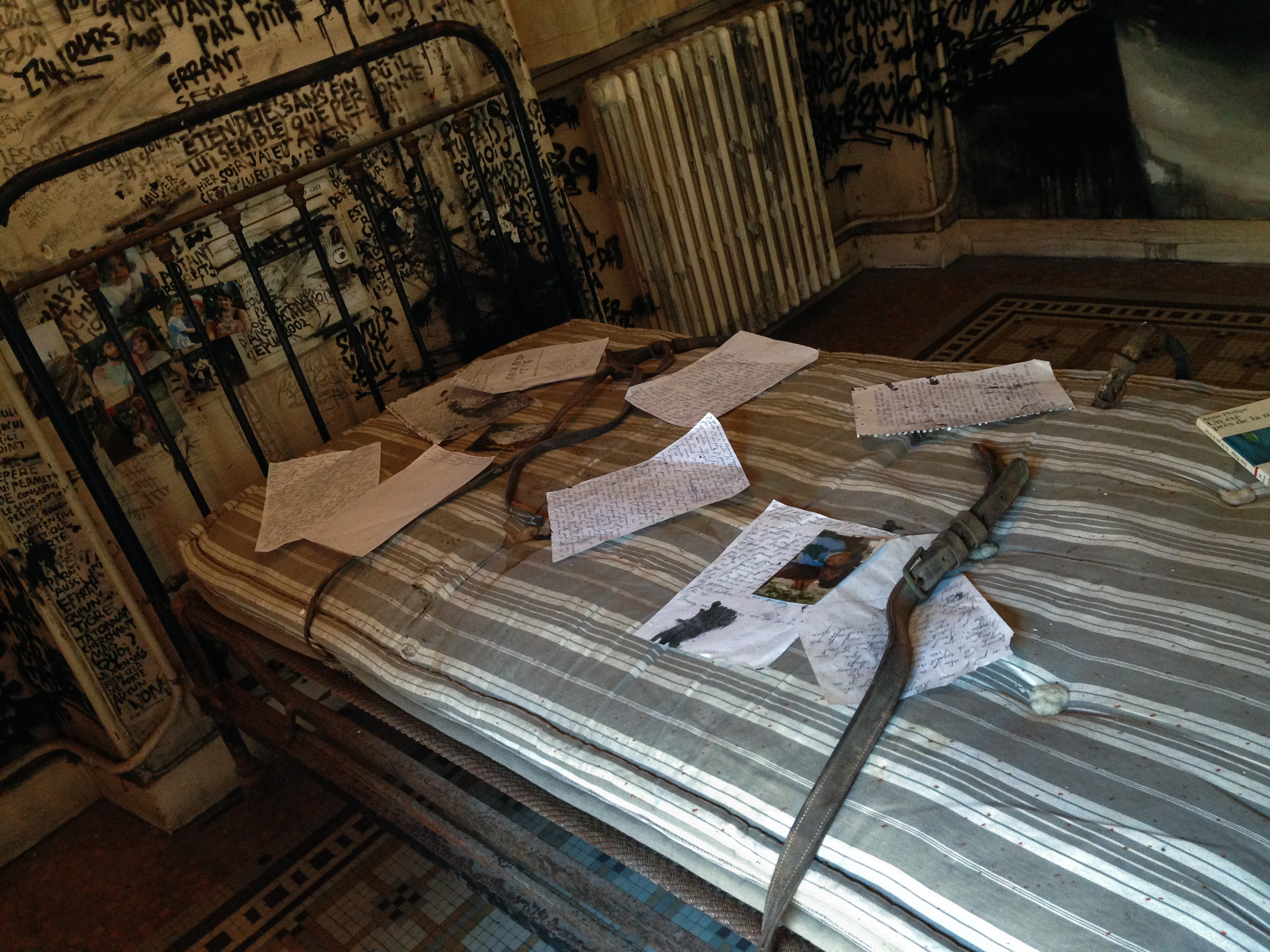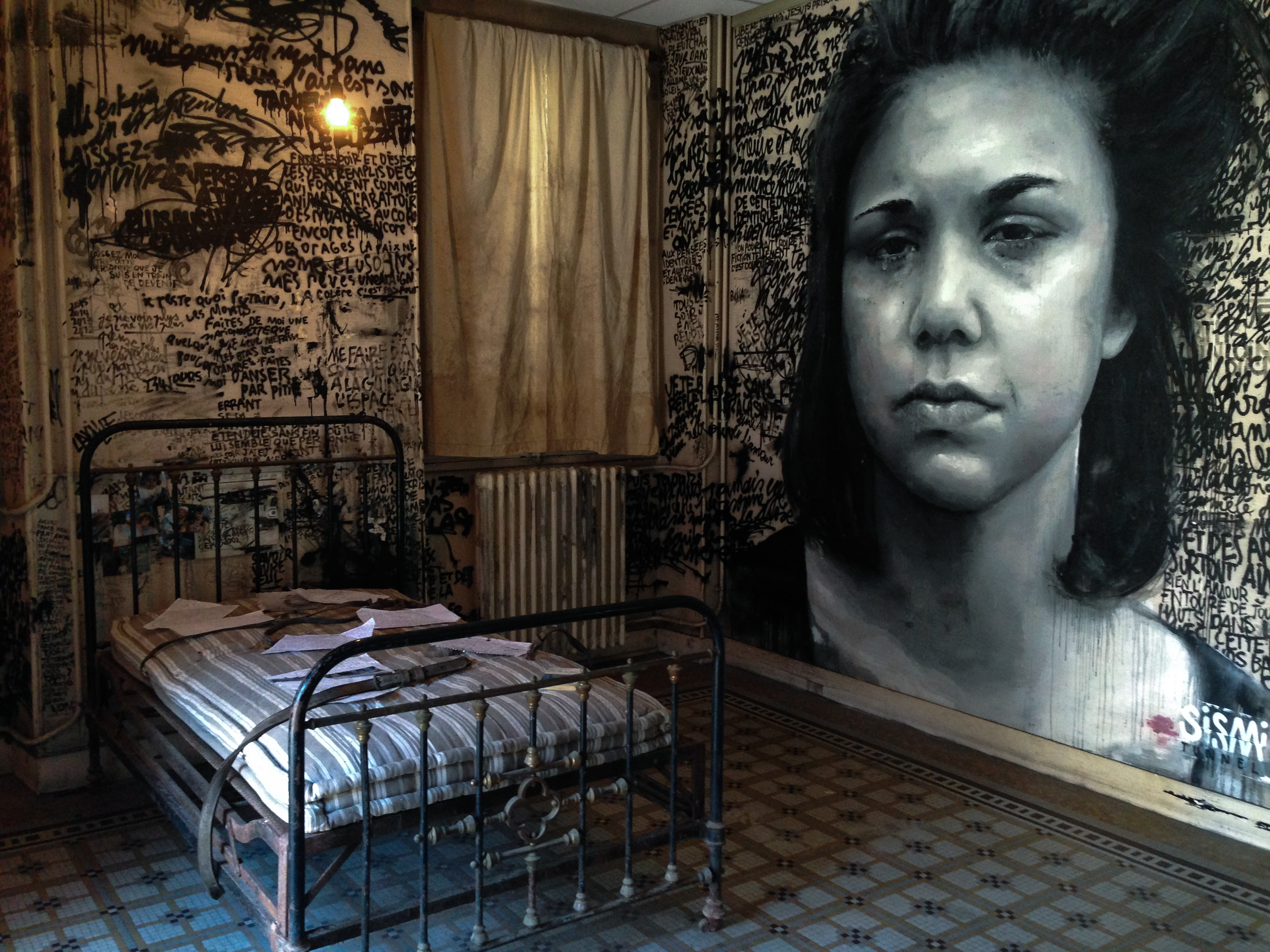 Ce sont les lieux et les rencontres qui nourrissent le travail de ces 2 artistes entre art abstrait et figuratif et dans cet ancien hôtel de police, qui fut initialement un Institut pour sourdes et muettes, ils ont banni la couleur et livrent le témoignage d’une jeune fille que l’on imagine sombre.