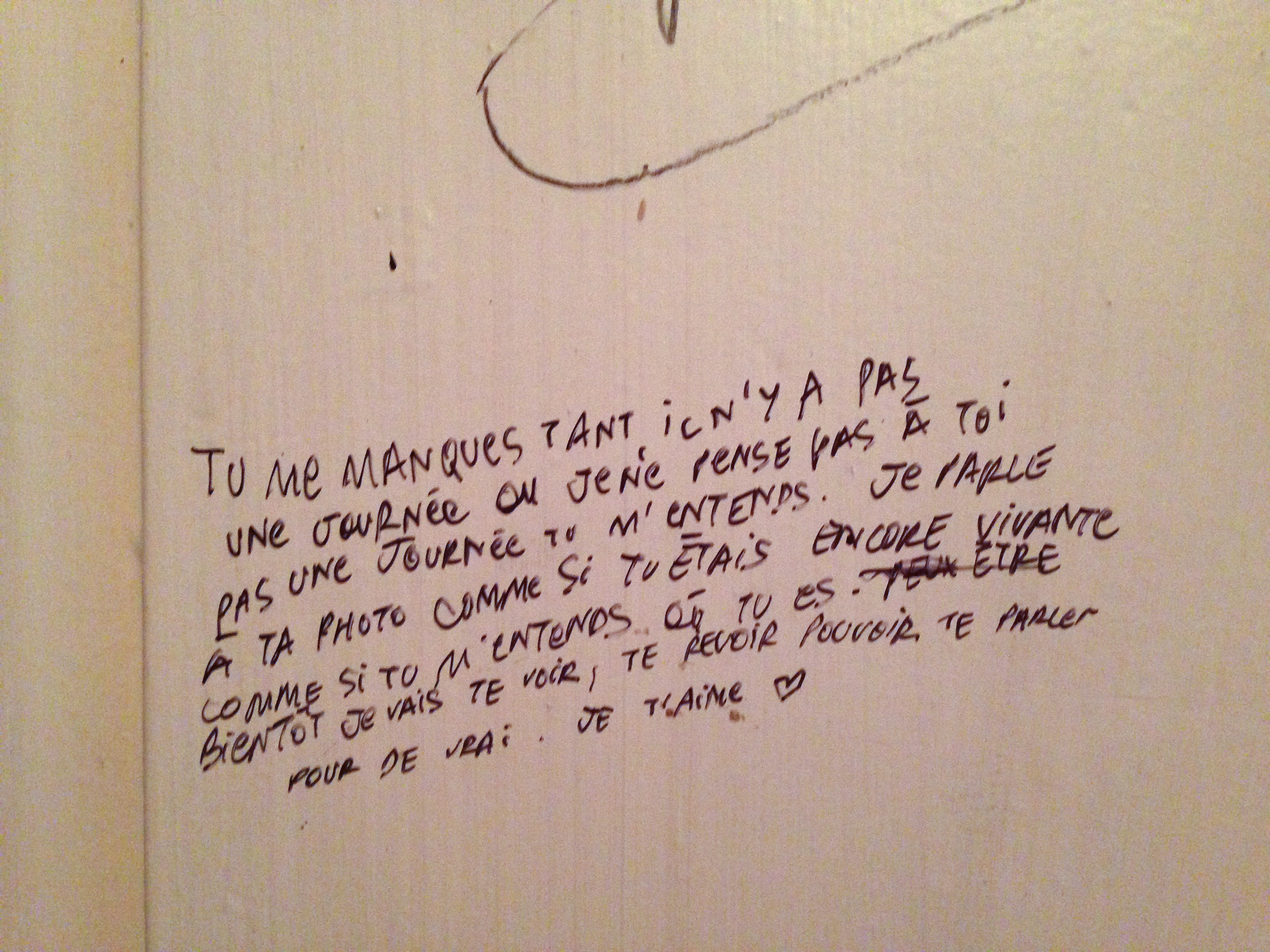 L’ensemble est d’une poésie touchante et triste, à l’opposé du mur coloré que j’avais découvert le long d’une école parisienne dans le 10éme arrondissement durant l’été 2013.