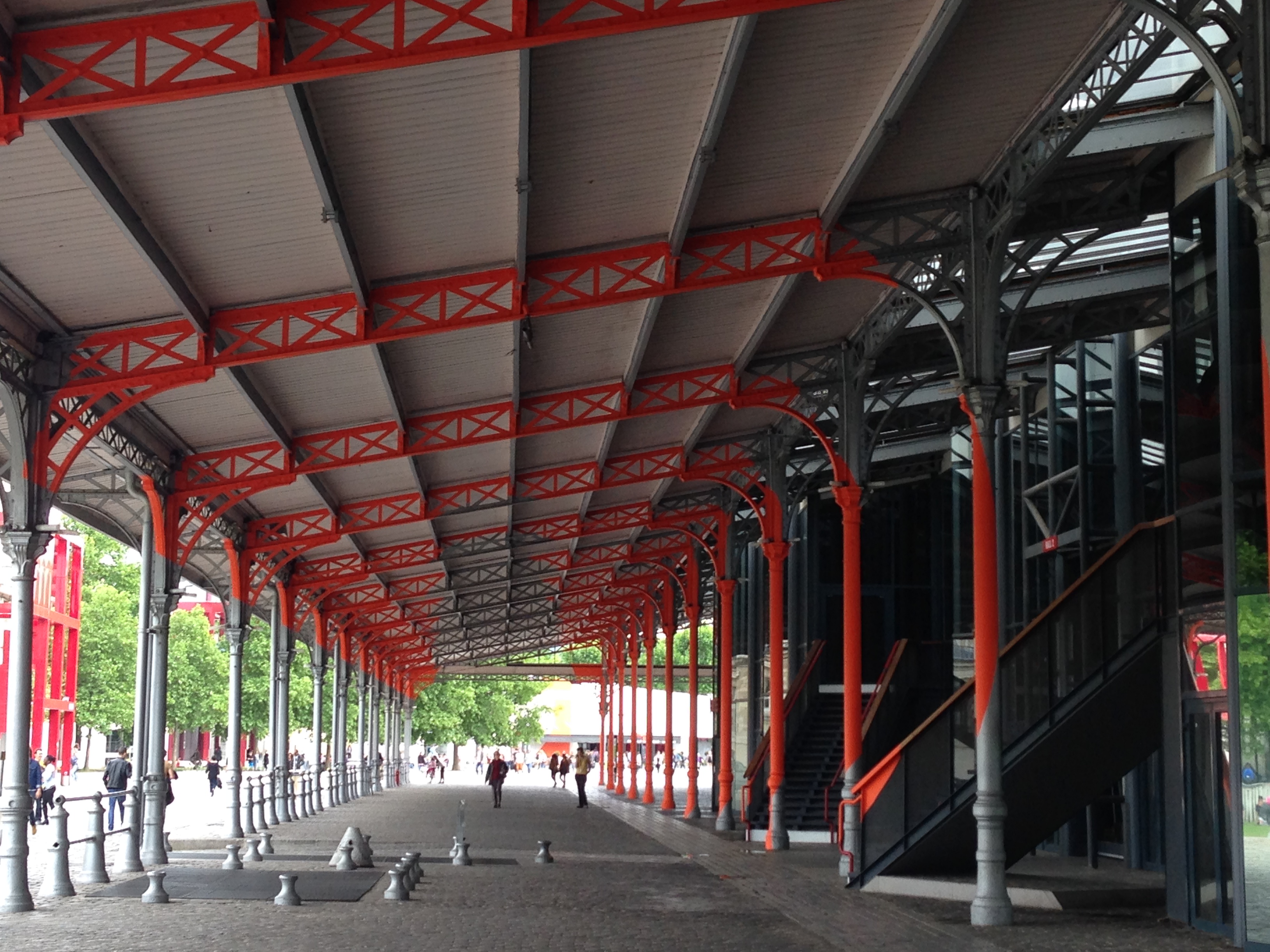 Tout au bout, une peinture rayonnante s’achevant au lointain, sur un pan de mur de la façade de la Philharmonie.