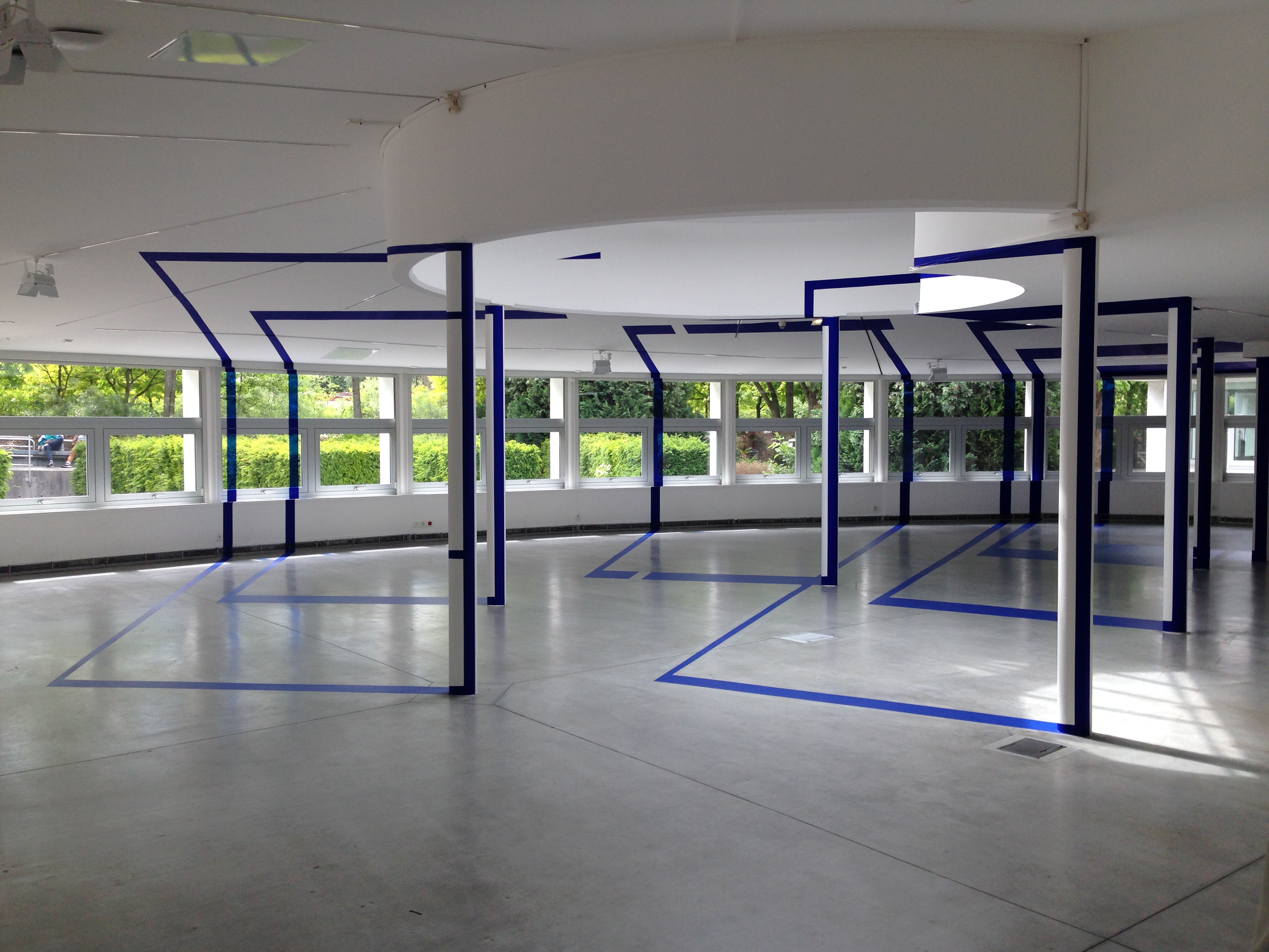 Dans le Pavillon Paul-Delouvrier par exemple, il s’est inspiré de l’architecture du lieu : cet ancien restaurant est composé de trois pièces, une ronde et deux rectangulaires, avec, au milieu, un hall triangulaire.