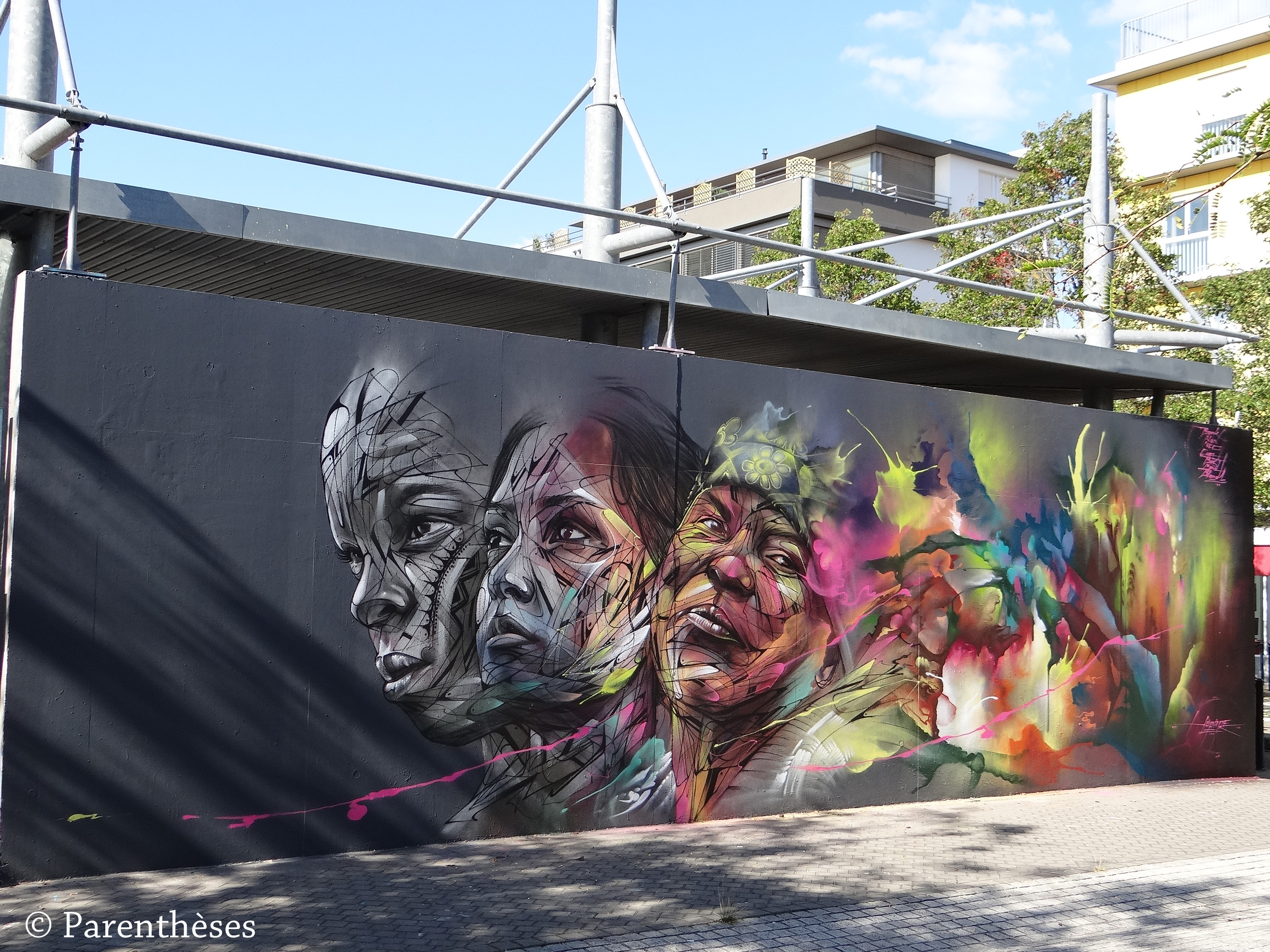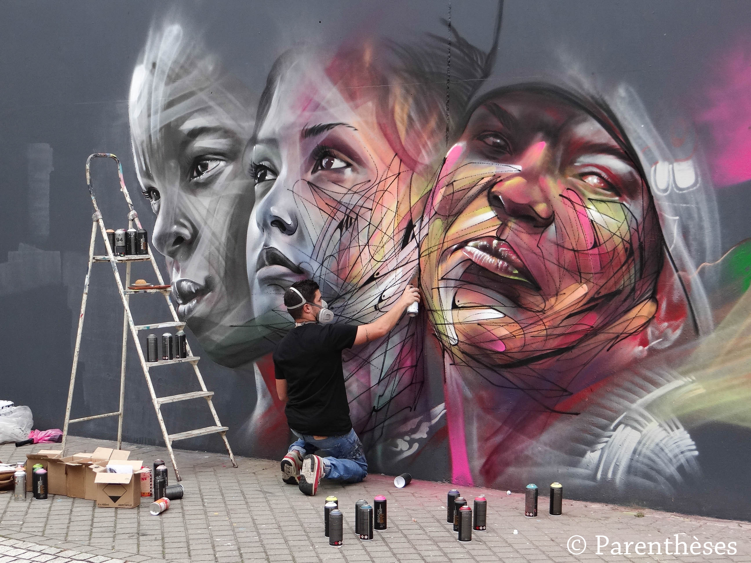 A Bordeaux, dans le cadre de la 1ère performance de la seconde saison du Mur de Bordeaux, ce sont les portraits de 3 femmes rencontrées au cours de ses déambulations à travers le monde, qu’il a représenté.