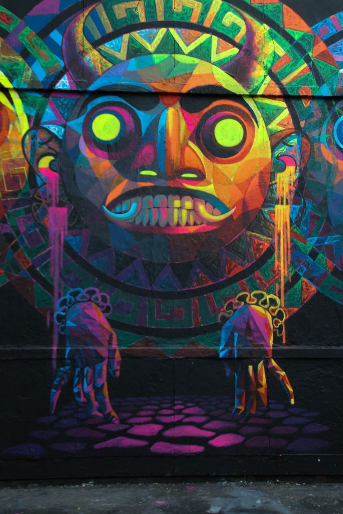 Artiste urbain mexicain issu d’une région culturellement riche et ancrée dans les racines des civilisations zapotèques et aztèques, Oaxaca, Antonio Triana aka Cix jongle entre culture mystique préhispanique, folklore mexicain moderne voire futuriste et thématiques comme la mort, les effets du temps et les cycles de la vie en jouant graphiquement sur la distorsion de ses personnages.