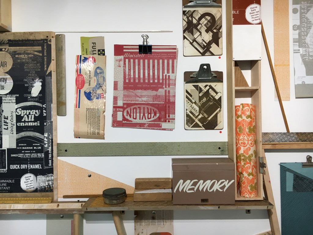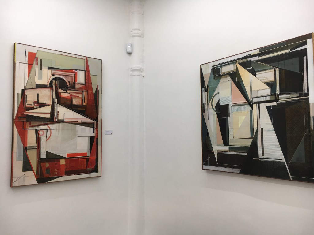 Utilisant aussi bien la peinture, le collage que la mosaïque, l’artiste propose dans chacune de ses toiles et dans les 2 compositions réalisées in situ ses fragments de mémoire.